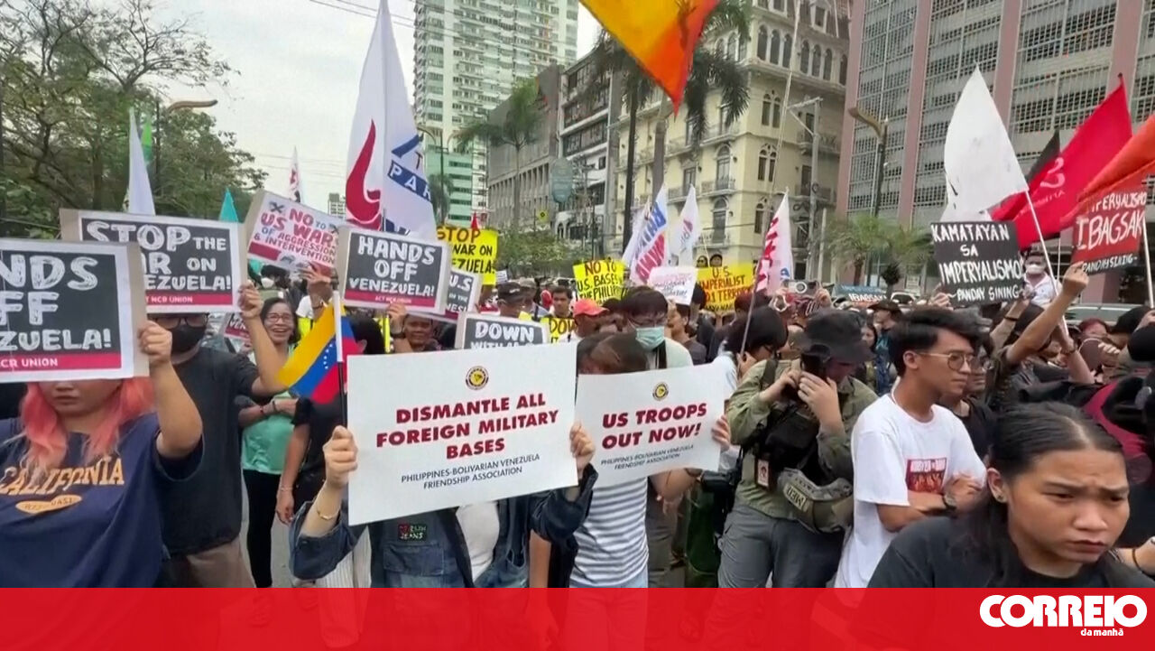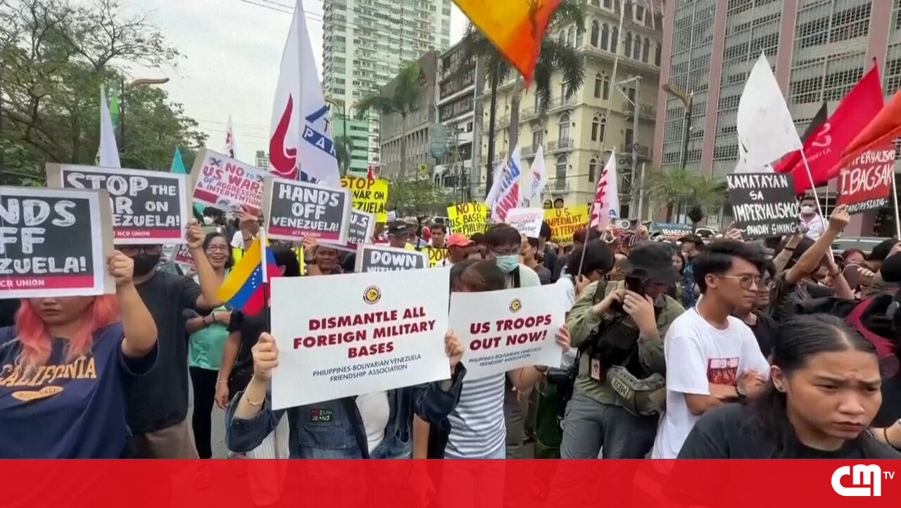 As ruas de Manila, nas Filipinas, foram palco, esta segunda-feira, de um protesto contra a ação militar dos EUA na Venezuela.