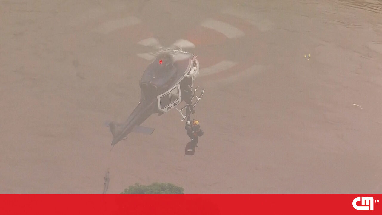 Moradores resgatados de helicóptero dos telhados das casas após cheias na Austrália