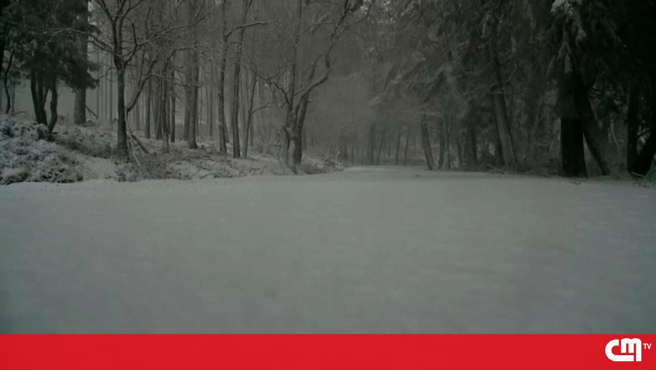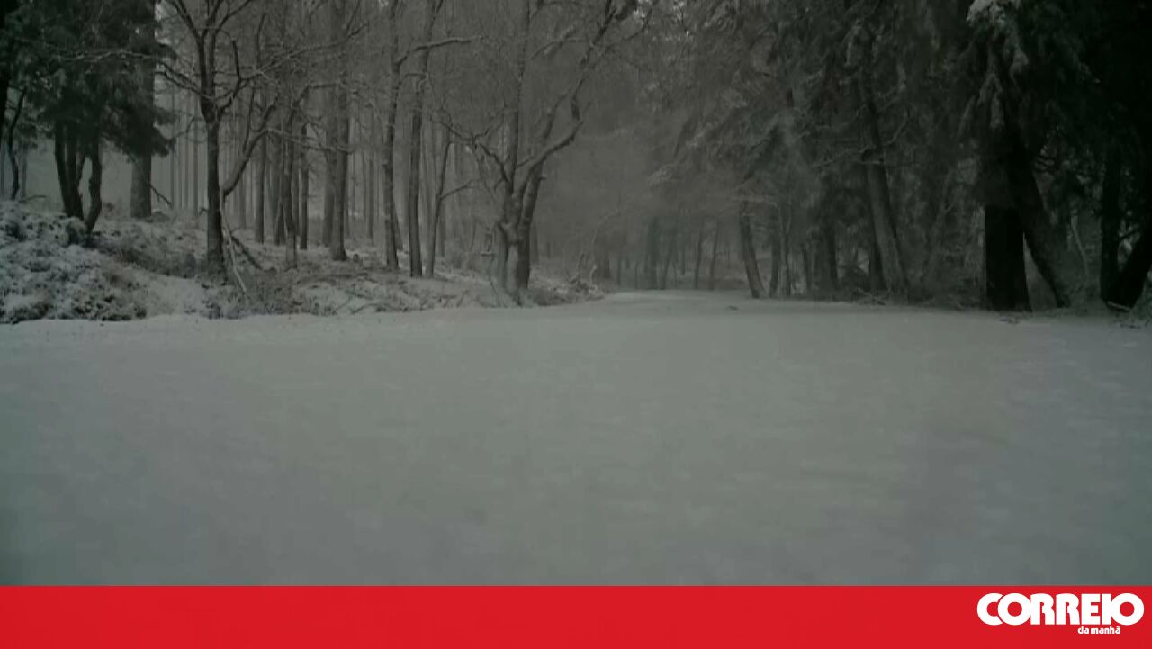 Neve deixa Serra da Lousã pintada de branco e corta várias estradas na zona