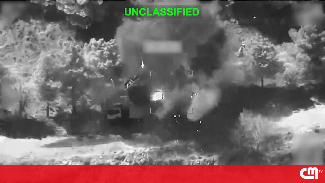 As forças norte-americanas divulgaram, esta terça-feira, imagens de ataques aéreos contra posições iranianas, mostrando explosões e destruição de alvos militares.