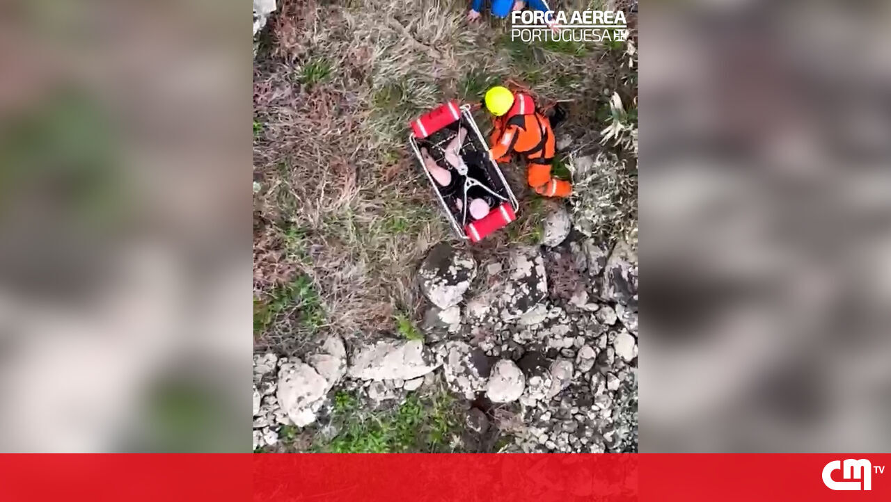 O momento do resgate dos turistas polacos presos em zona rochosa na Madeira