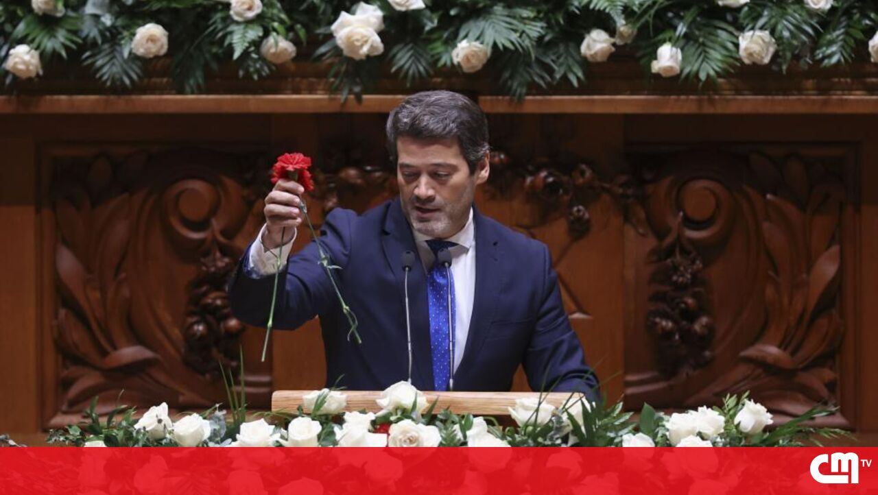 O momento em que André Ventura retira cravos vermelhos e diz que 'o dia é de rosas brancas'