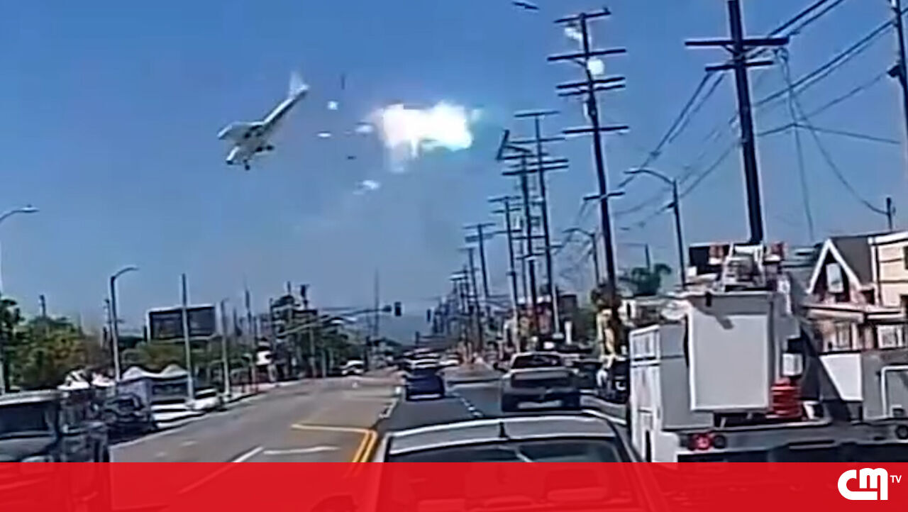 Uma avioneta colidiu com um poste de alta tensão e despenhou-se num parque de estacionamento em Los Angeles, EUA, esta segunda-feira. O piloto foi assistido no local e transportado para o hospital em estado crítico.