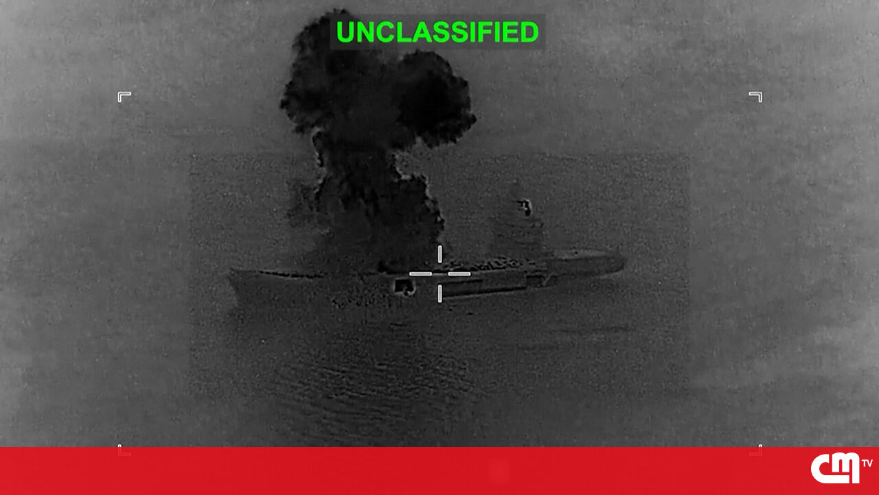 Imagens divulgadas, esta sexta-feira, pelo Comando Central norte-americano mostram o momento em que os EUA atacaram e incendiaram um navio iraniano utilizado para operações militares com drones.