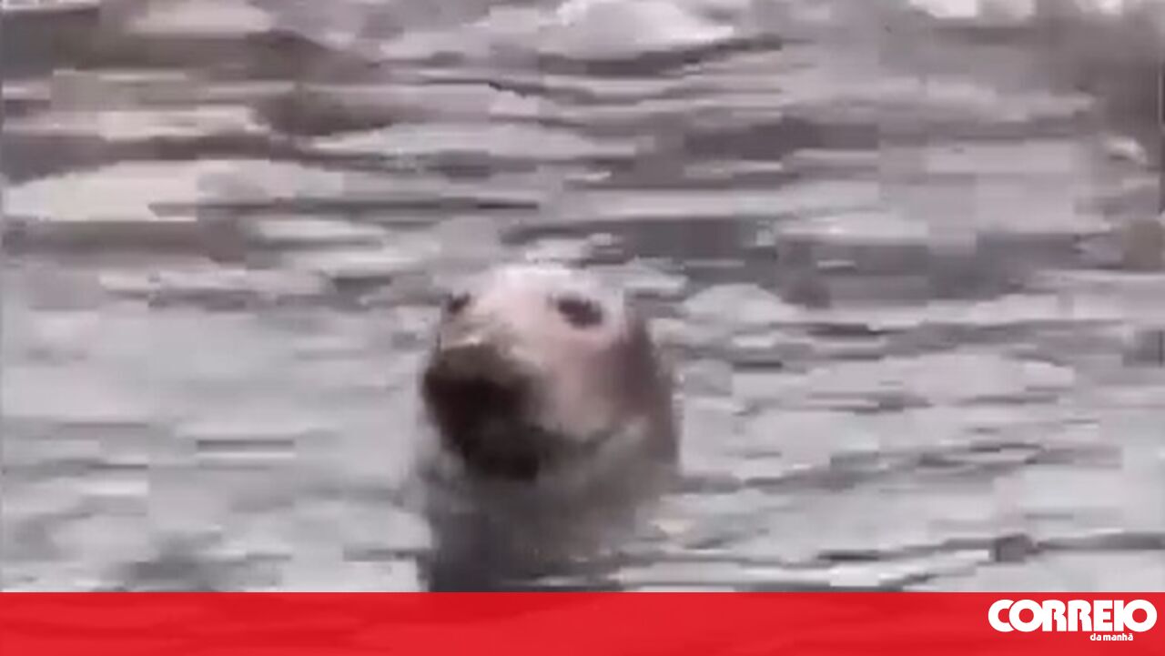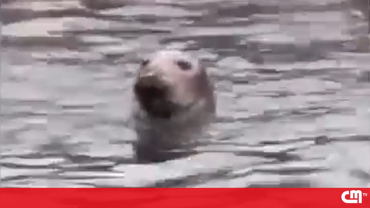 O momento em que foca-cinzenta é avistada na marina de Cascais