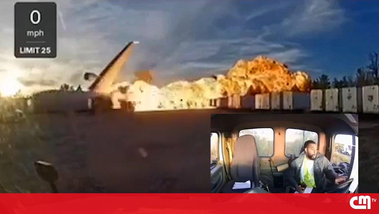 Imagens de segurança de um camião mostram o momento em que o avião de carga da UPS se despenhou, na terça-feira à noite, no estado norte-americano do Kentucky, deixando o motorista em choque com o que estava a observar.