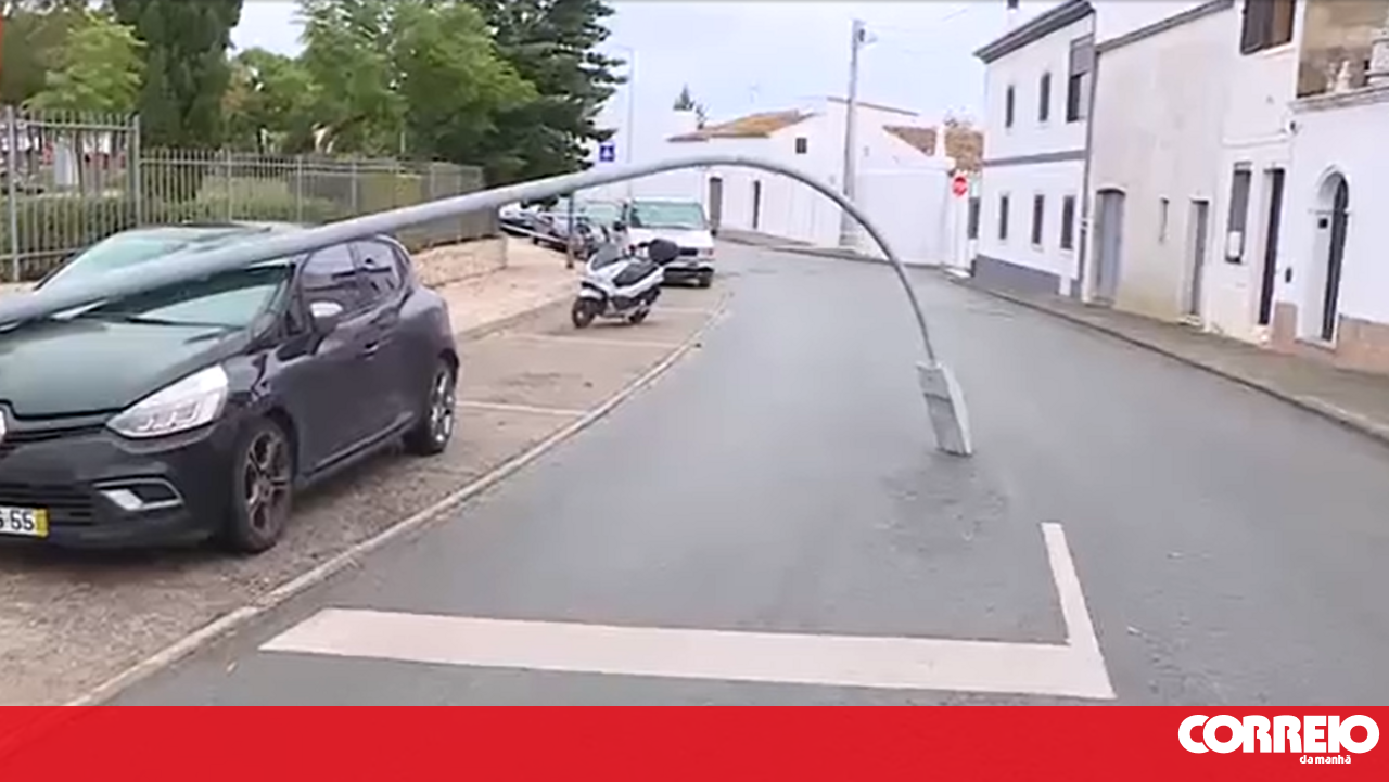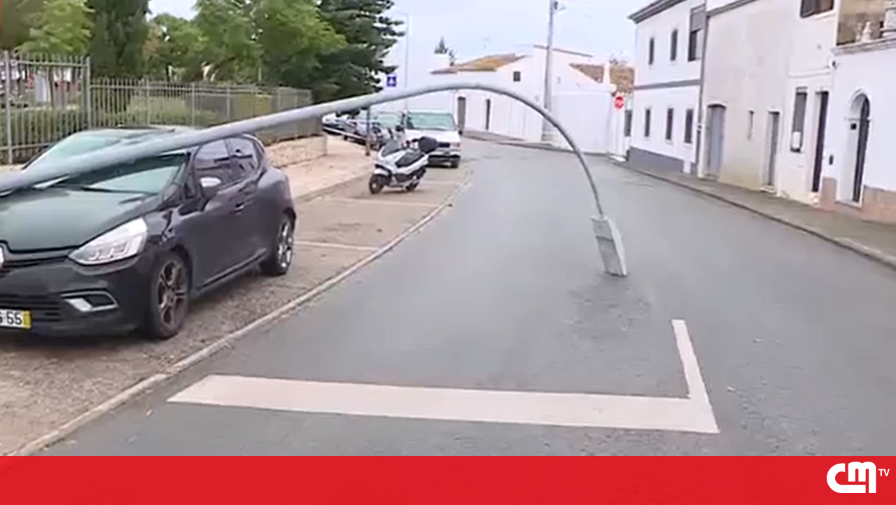 “Os estragos estão à vista”: Poste de iluminação cai sobre viatura durante passagem de depressão ‘Bernard’ por Tavira