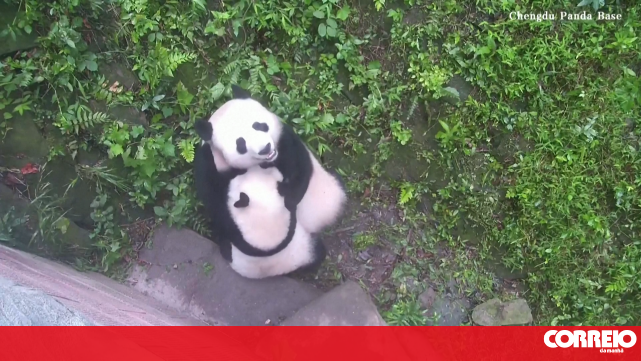 Uma mãe panda-gigante mostrou o seu bebé para a câmara de vigilância da Base de Investigação de Criação de Pandas Gigantes na China e a sua cria continuou a tentar brincar.