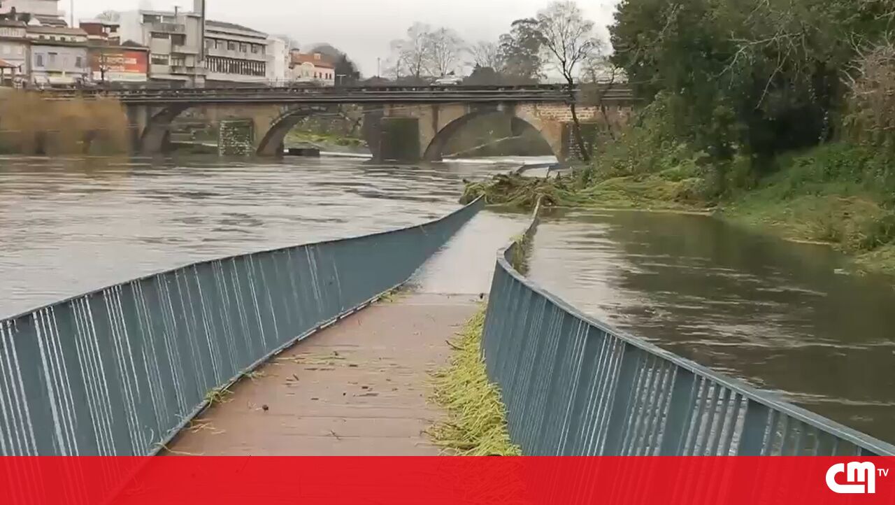 Passadiço em Barcelos submerso devido à subida do leito do rio cávado