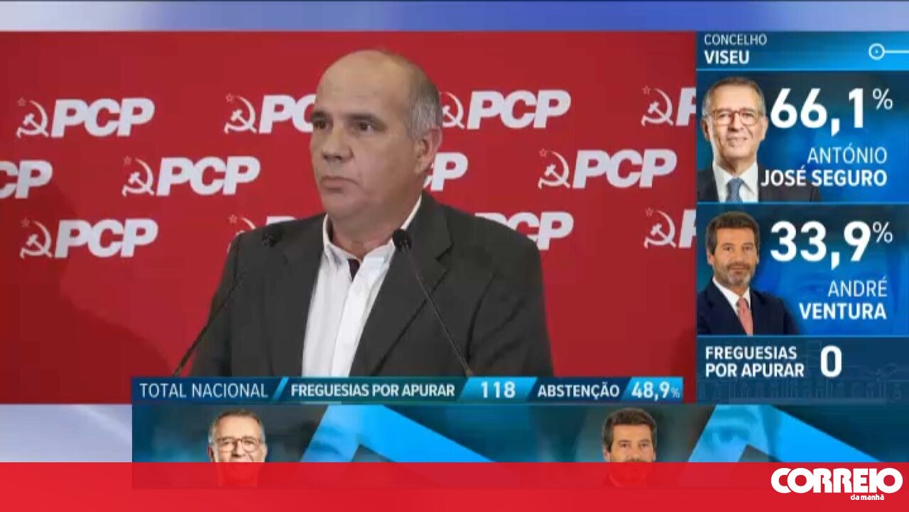 O secretário-geral comunista, Paulo Raimundo, afirmou que "a grande notícia do dia" é a "clara derrota" de André Ventura nas presidenciais, enquanto pediu a António José Seguro, Presidente eleito, que "não apoie uma política que afronta" a Constituição.