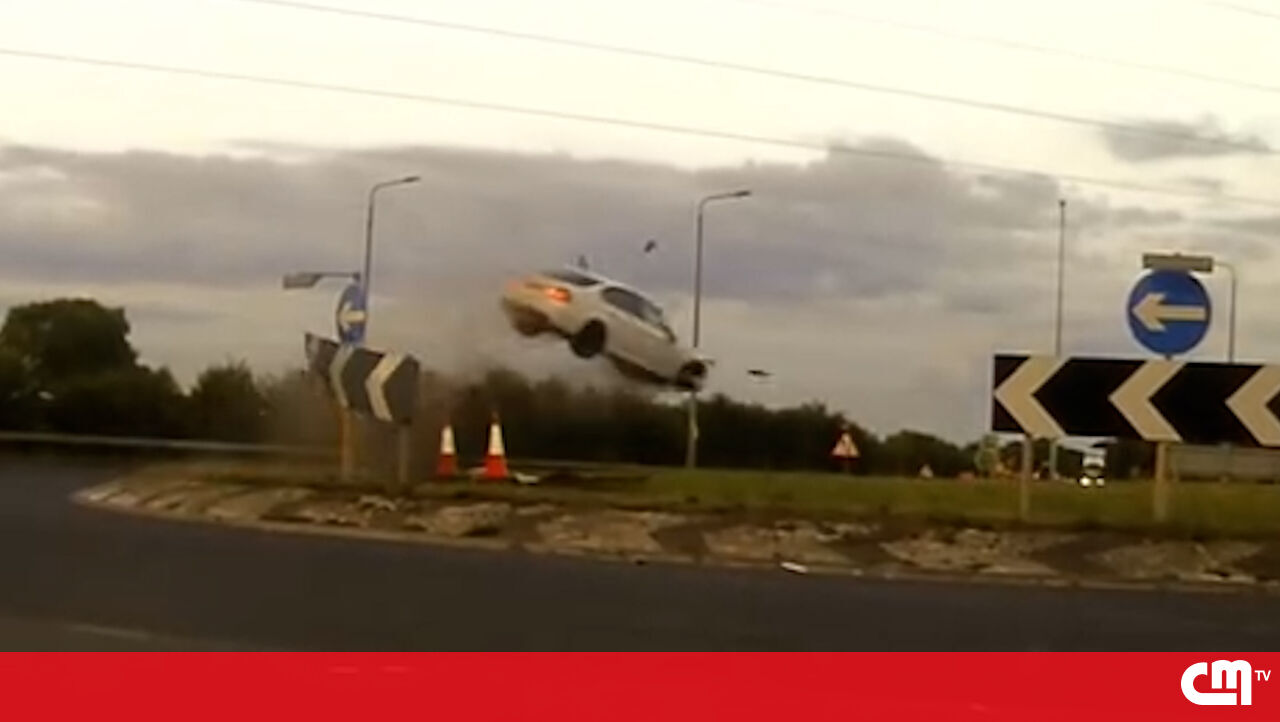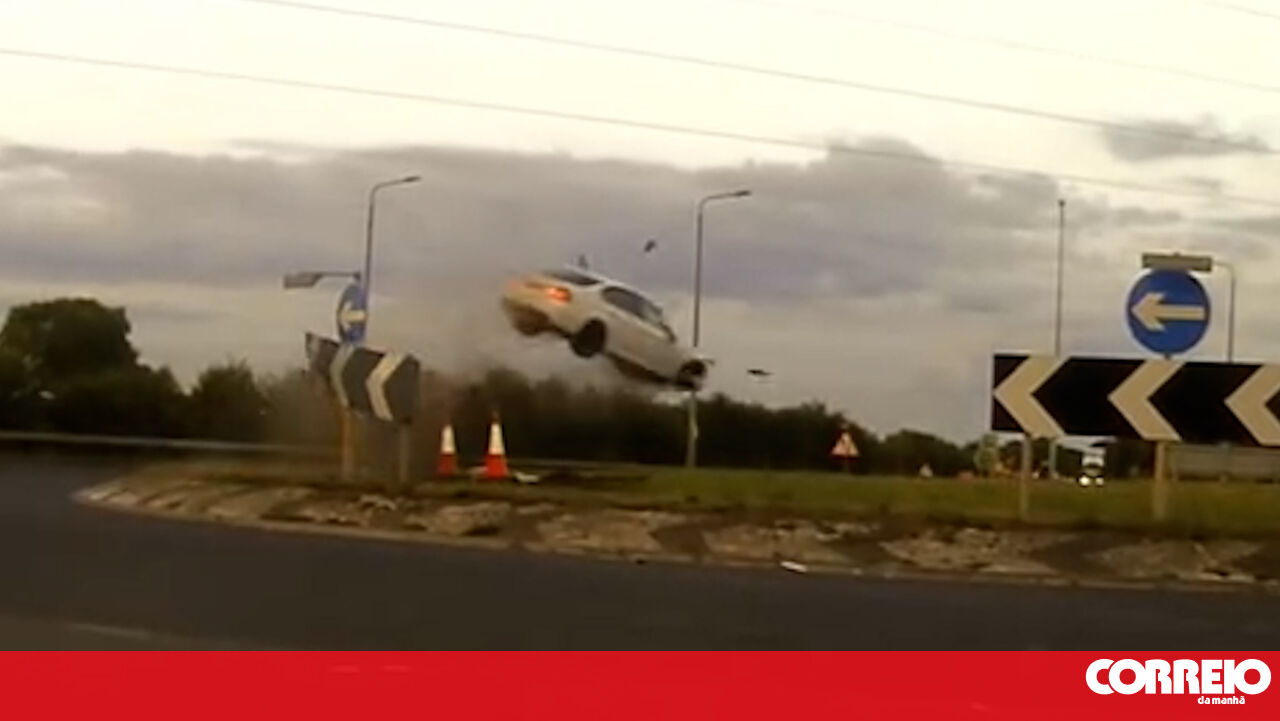 Perseguição a 225Km/h termina com BMW a ‘voar’ em rotunda