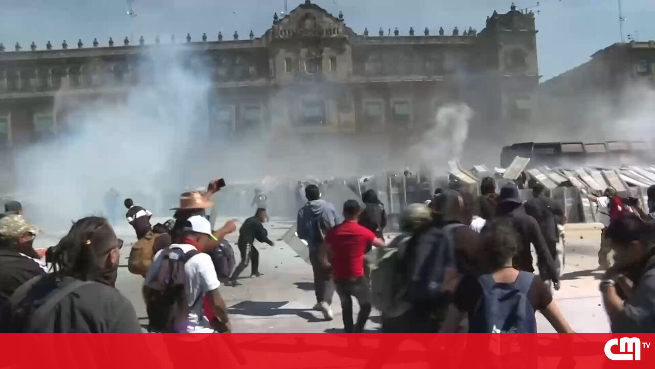 Polícia dispara gás lacrimogéneo a jovens que marchavam contra a presidente Sheinbaum na Cidade do México