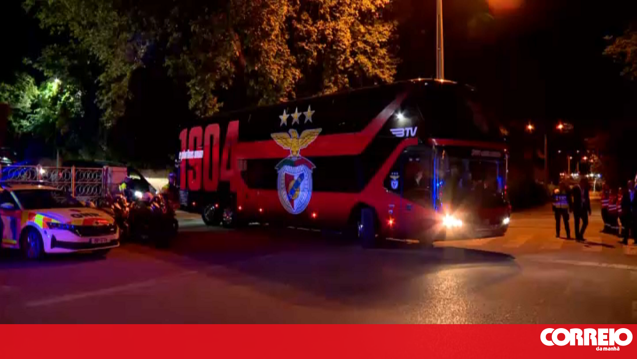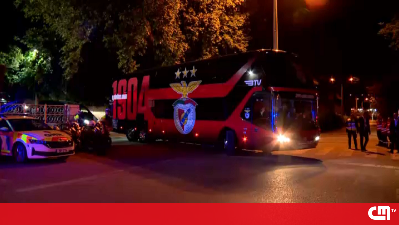 Polícia em peso, mas adeptos nem vê-los: Autocarro do Benfica sai do Jamor