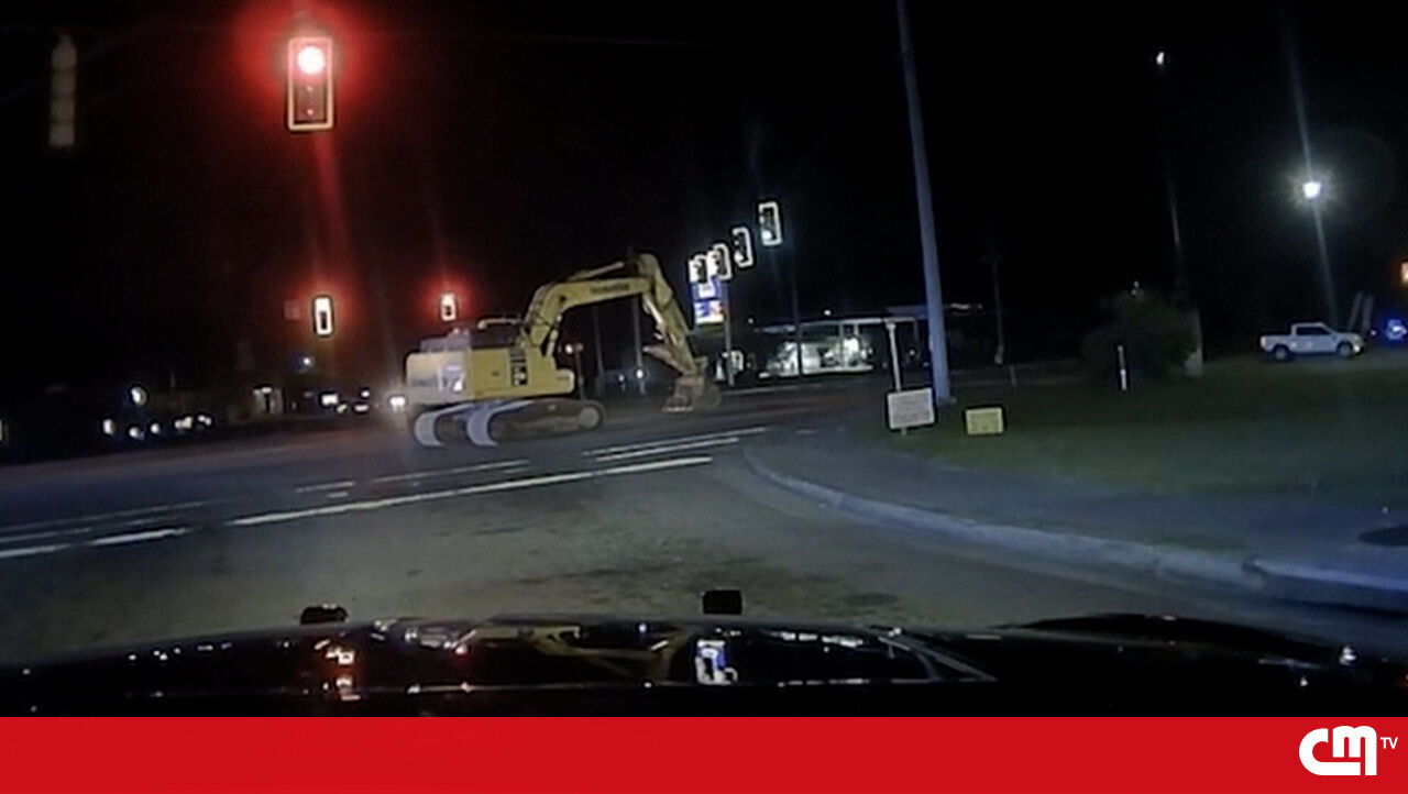 Polícia persegue escavadora por mais de uma hora em ritmo de caminhada