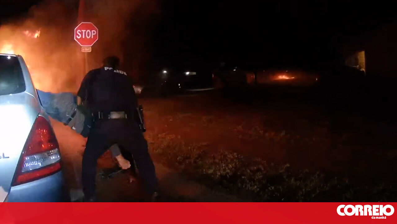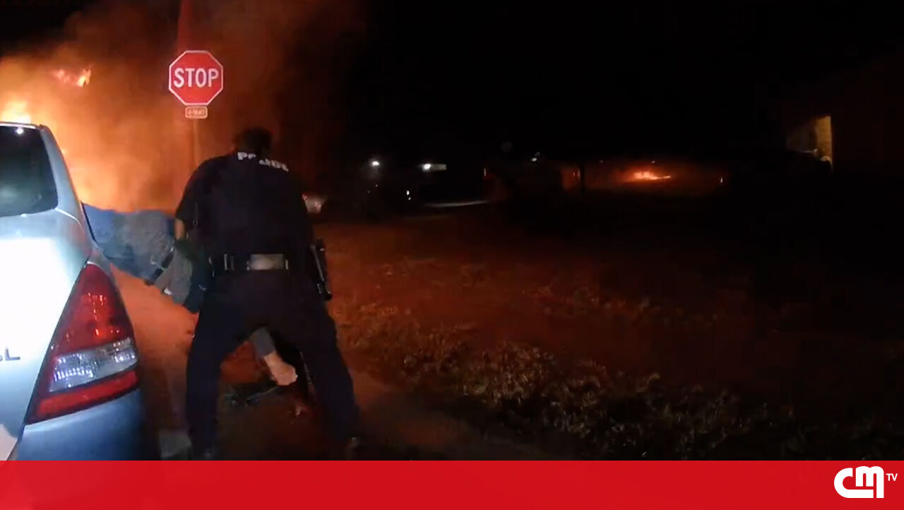 Dois polícias de Blue Mound, no estado norte-americano do Texas, resgataram um homem preso dentro de um carro em chamas. Os agentes partiram o vidro traseiro e puxaram a vítima para fora, segundos antes de o veículo ficar totalmente consumido pelo fogo.