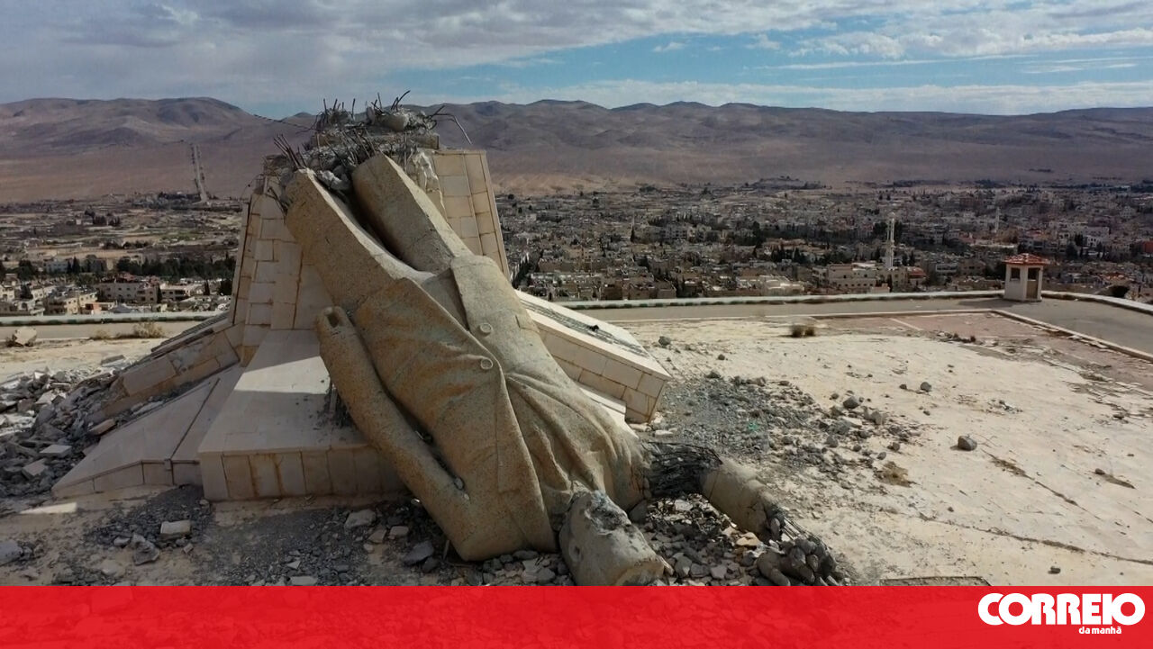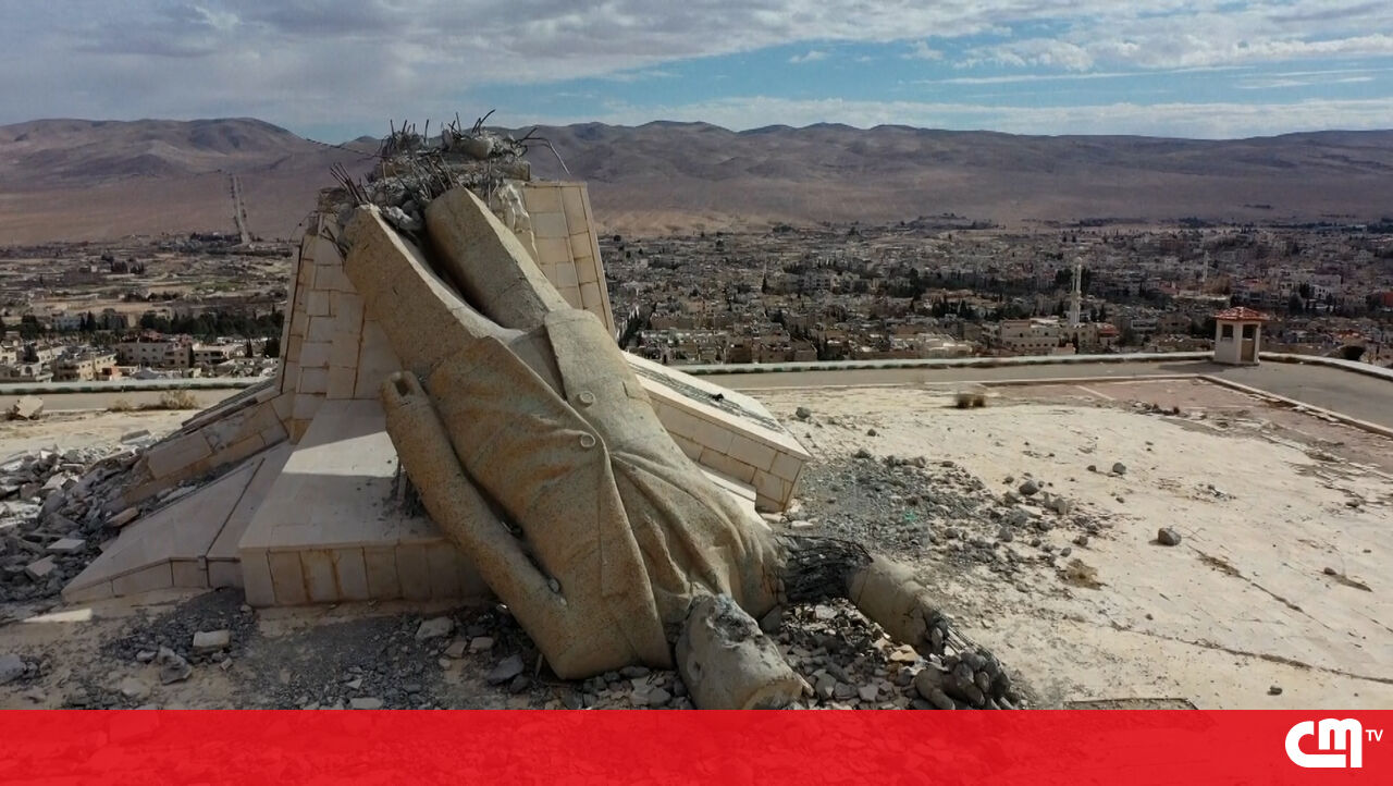 O monumento de Assad, pai de Bashar Assad, que governou a Síria até ao mês passado, foi derrubada por rebeldes.