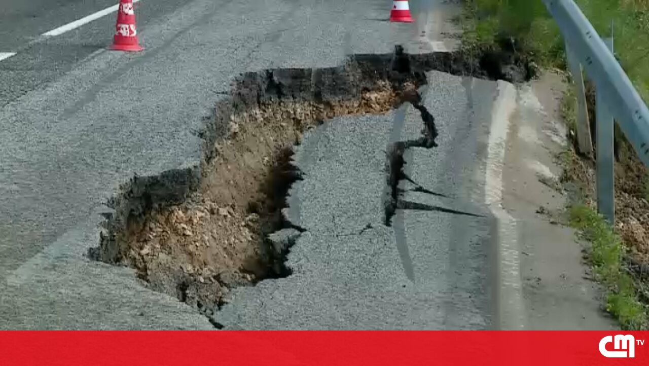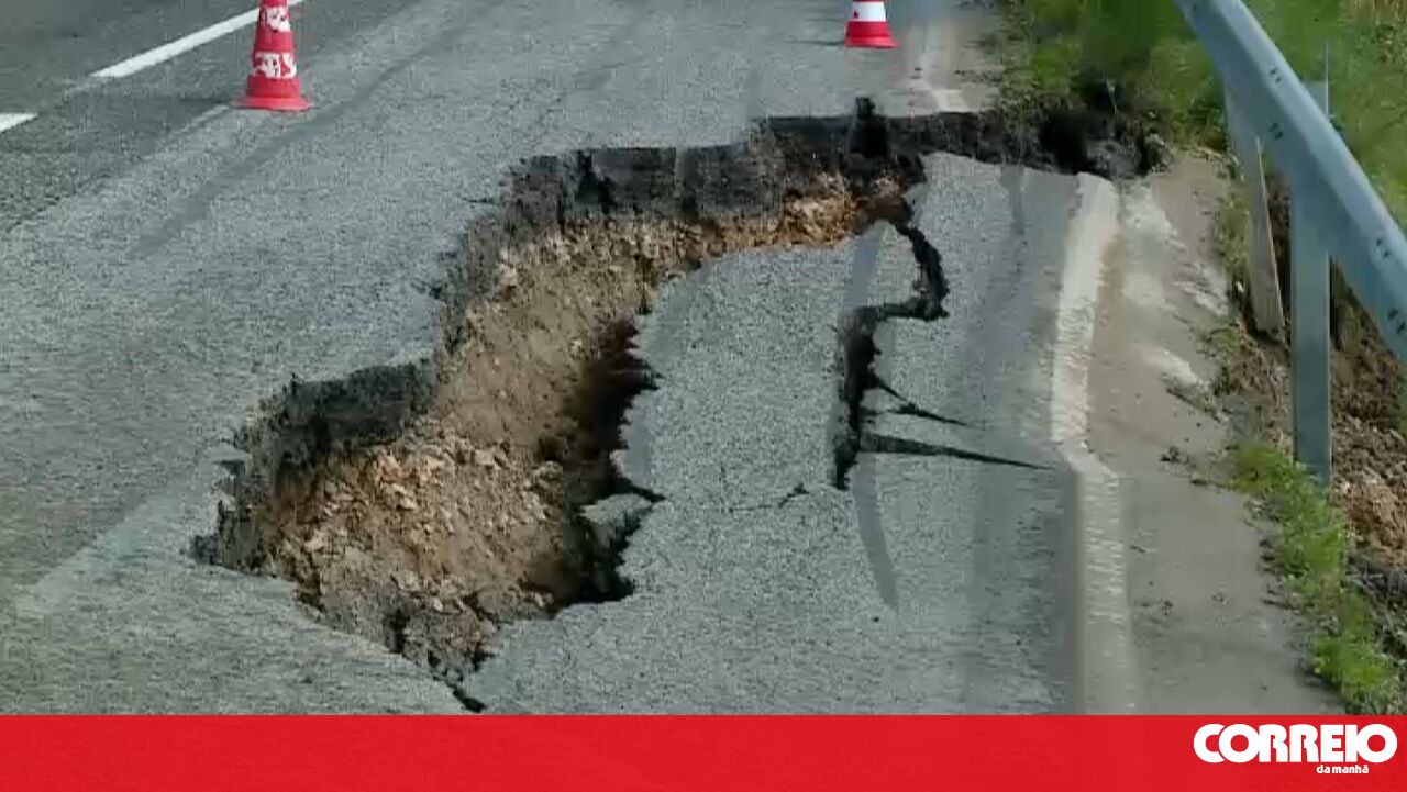 Parte de troço da Estrada Nacional 115 cedeu e formou, na noite deste sábado, uma cratera.
