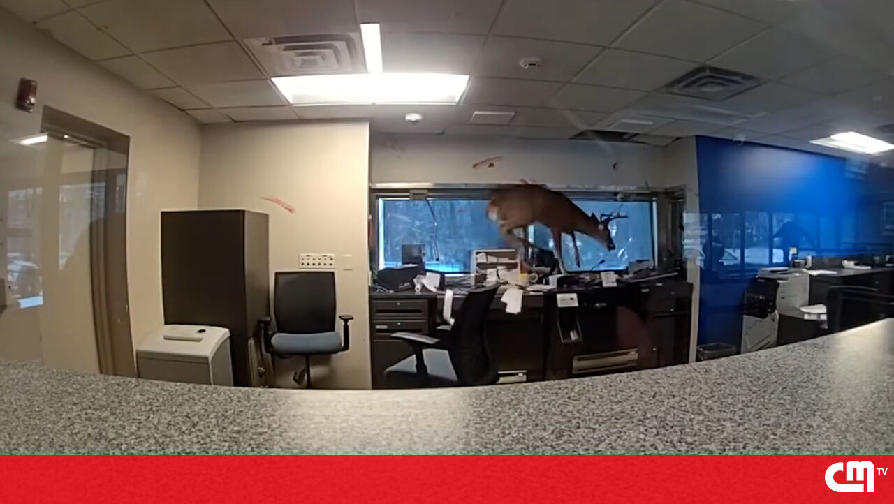 Um veado entrou num banco no estado norte-americano de Nova Iorque e espalhou o caos no local. O animal partiu a janela, entrou e acabou por ficar preso. A polícia foi chamada e conseguiu retirar o animal em segurança.