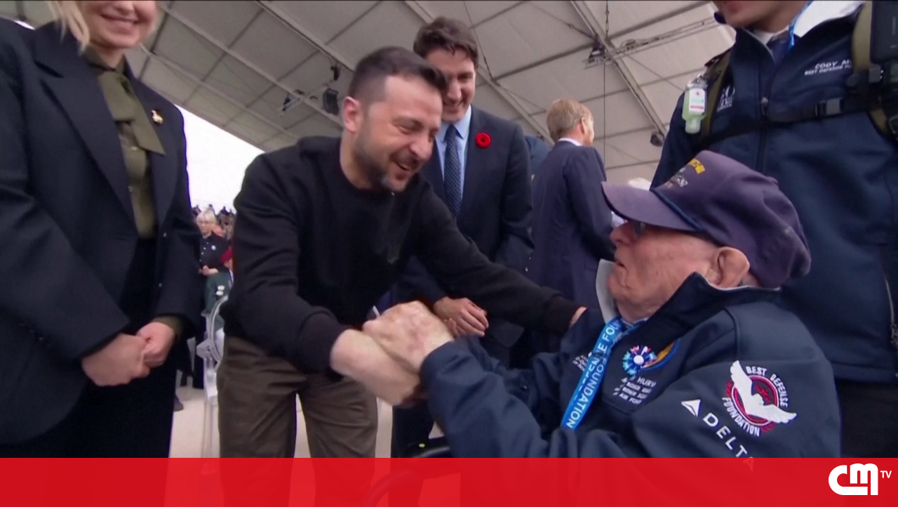 Um veterano da Segunda Guerra Mundial emocionou-se ao conhecer o presidente da Ucrânia, durante as cerimónias do Dia D, em França, e chamou-o de herói. Zelensky respondeu: “Não, você salvou a Europa”.