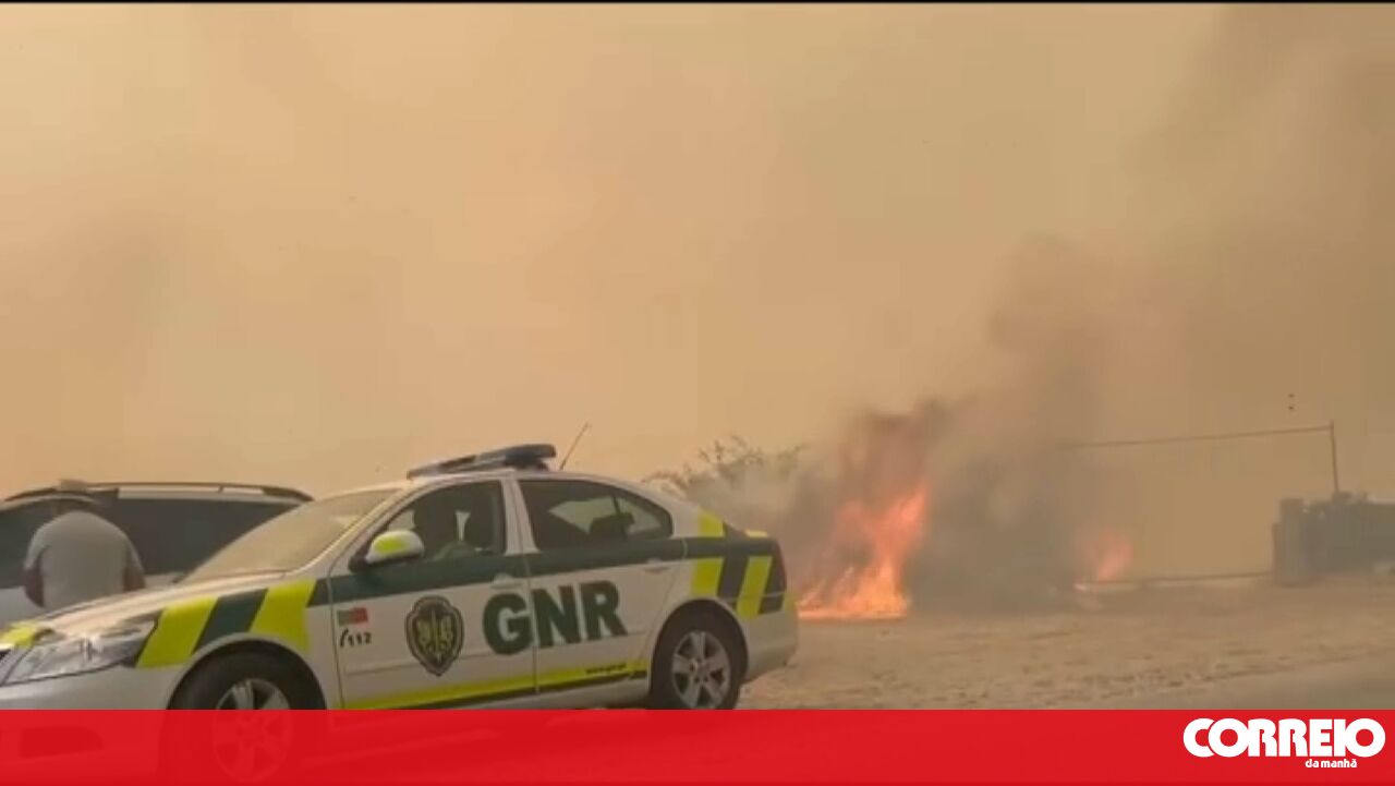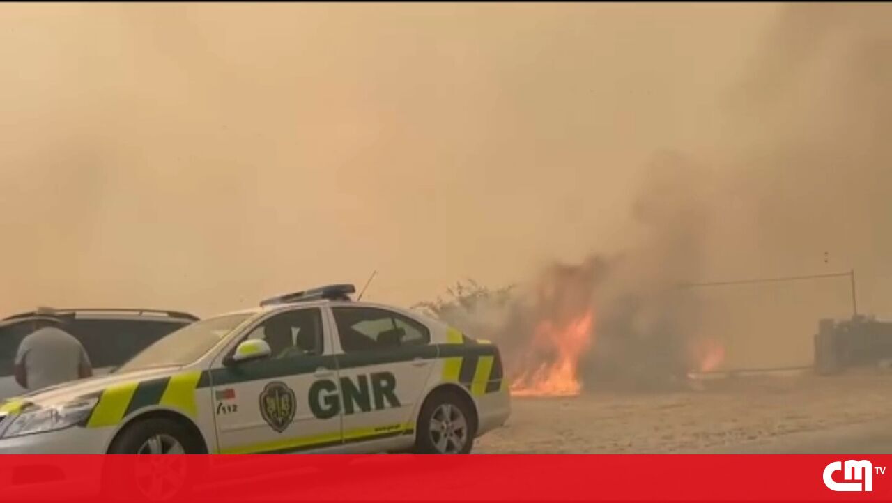 Viaturas da GNR retiradas após ficarem cercadas pelo fogo que lavra em aldeia de Lamas