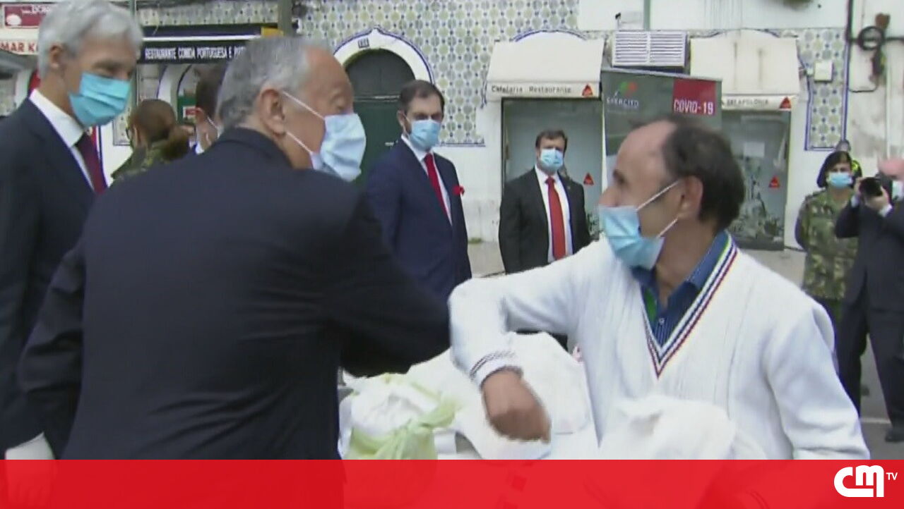 Marcelo ajuda a distribuir alimentos aos sem abrigo com cumprimentos de cotovelo. Veja as imagens