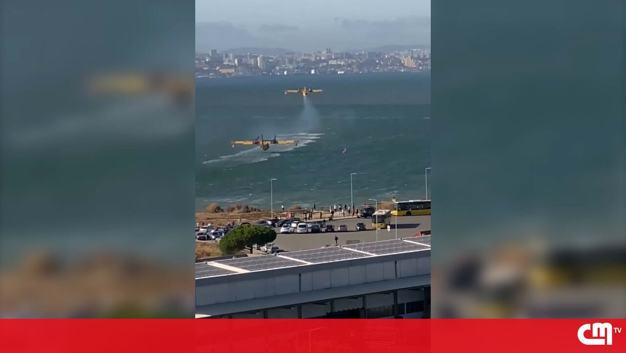 Vídeo mostra hidroaviões a abastecer no rio durante combate às chamas no Seixal