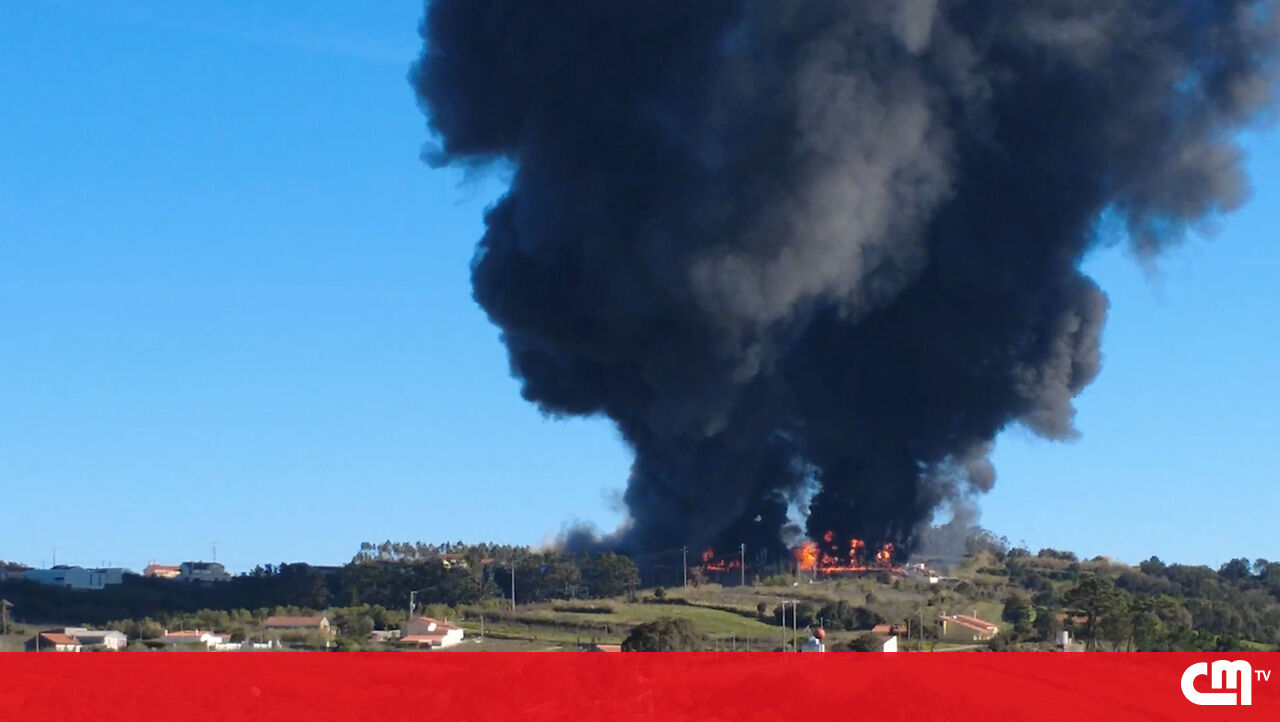 Vídeo mostra nuvem negra provocada por incêndio em armazém de frutas em Óbidos