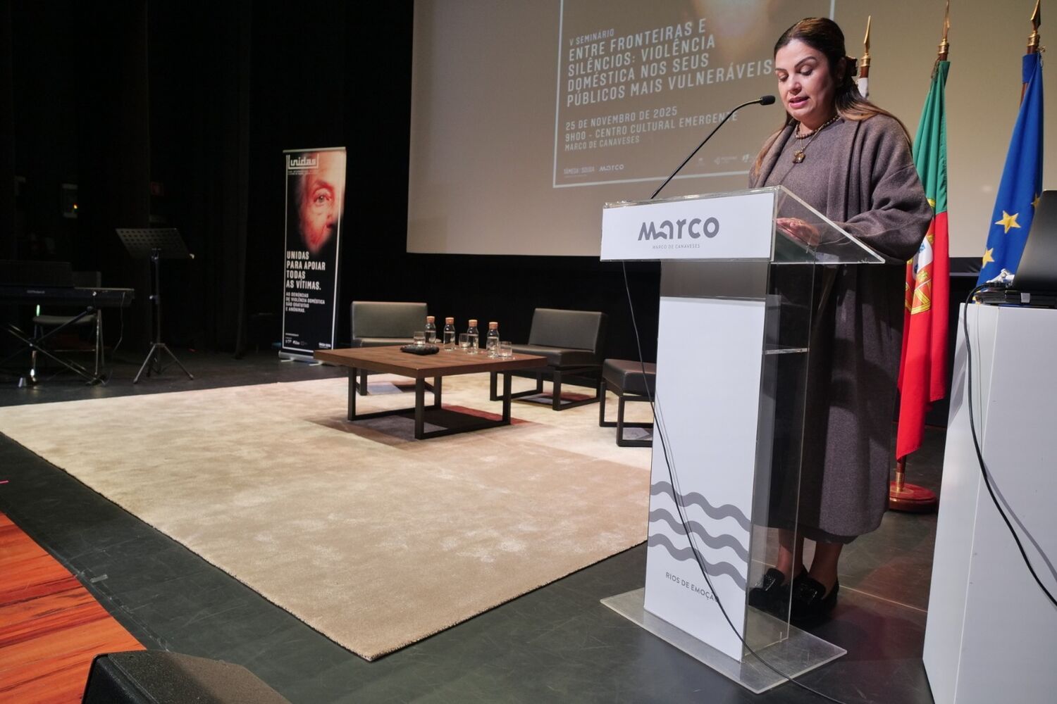 “Os números são elevados, podendo transmitir-nos a perceção que o cenário do fenómeno da violência doméstica está a aumentar. Mas acreditamos que refletem sobretudo uma maior visibilidade proporcionada pelas estruturas de apoio e equipas especializadas que existem atualmente. Deixo uma palavra de reconhecimento pelo trabalho contínuo, corajoso e indispensável das equipas do Município, desejando que este encontro nos ajude a construir novas soluções e, acima de tudo, a reafirmar que no Marco de Canaveses ninguém está sozinho”, afirmou Raquel PereiraOs dados do Gabinete VIVO revelam ainda que mais de 80% das vítimas são mulheres, de forma consistente ao longo dos anos, apesar de também haver um aumento de homens sinalizados como vítimas.Dos 1.286 atendimentos, presenciais e não presenciais, a maior parte (73,4%) diz respeito a apoio social; 15,3% apoio psicológico e 11,3% apoio jurídicoOSeminárioUnidascontoucomapresençadoPrimeiro-SecretáriodaCIMdoTâmegaeSousa, Telmo Pinto, do vice-presidente da Comissão para a Cidadania e Igualdade, Manuel Albano, bem como de professores da Artâmega que dinamizaram os momentos culturais. Integraram ainda o seminário os alunos da EPAMAC, responsáveis pela apresentação do projeto “Solta- te!”, juntando-se a um público alargado de profissionais e parceiros envolvidos no trabalho em rede de prevenção e combate à violência doméstica.Programa“Atitude+|MulheresEmpoderadas”