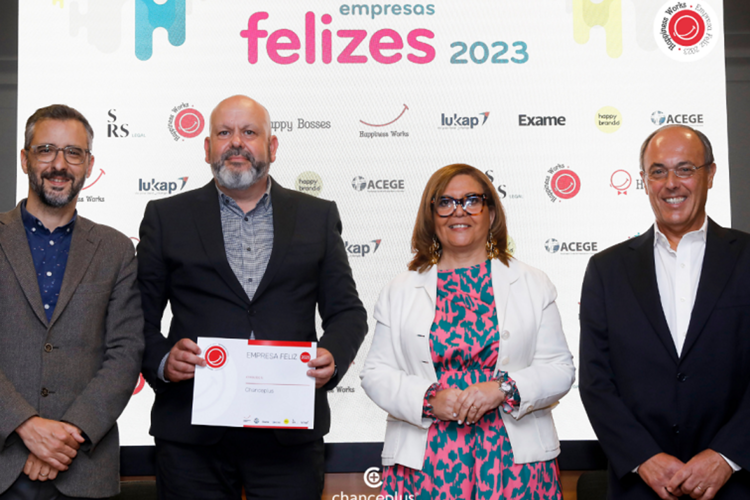 A chanceplus, empresa de intermediação de crédito de Vila Nova de Famalicão, foi distinguida com o selo Happiness Works 2023. A certificação, auferida e concedida pela entidade Happiness Works em parceria com a Revista Exame, elenca as 20 empresas que proporcionam mais qualidade de vida e felicidade aos colaboradores.