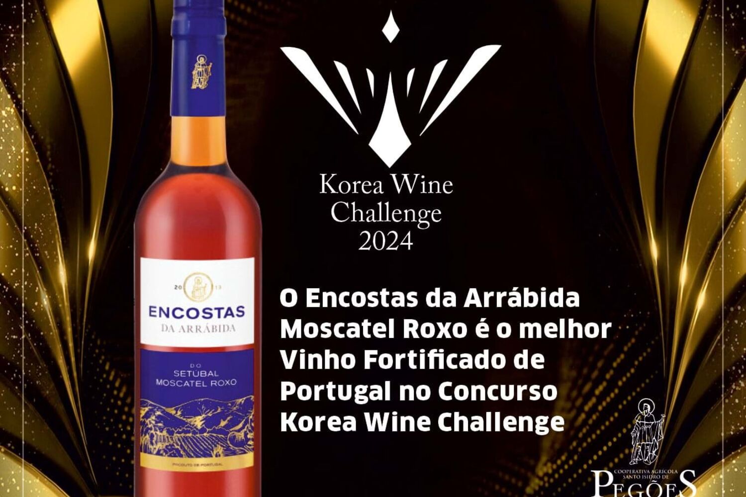 O Encostas da Arrábida Moscatel Roxo ganhou o prémio de Melhor Vinho Fortificado de Portugal na Coreia do Sul no concurso Korea Wine Challenge, o maior e mais prestigiante concurso de vinhos que se realiza anualmente neste país e é já a segunda vez que a Adega de Pegões obtém esta importante distinção, pois já havia ganho o prémio de melhor vinho fortificado de Portugal em 2023 com o mesmo vinho.