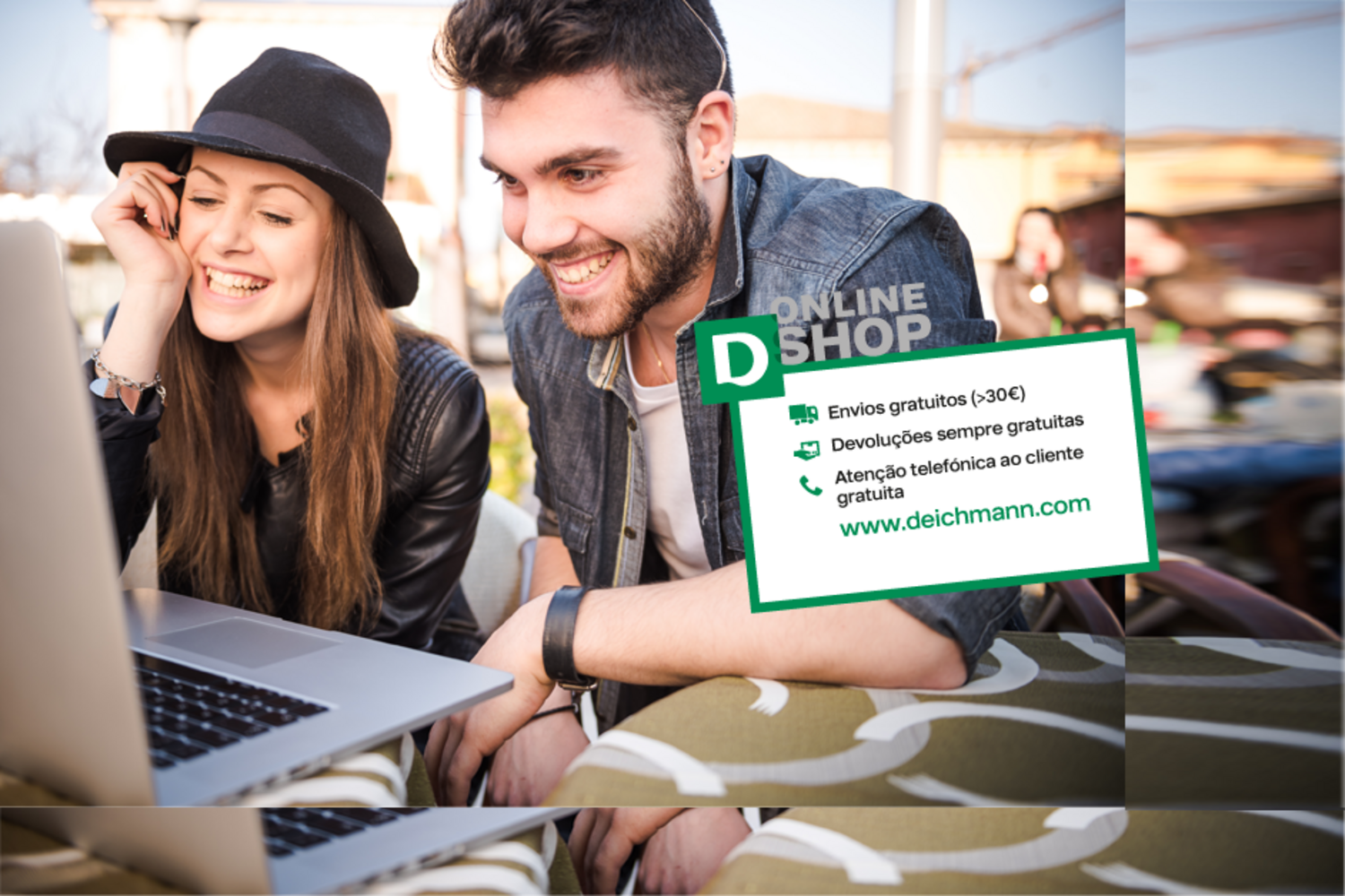 Na plataforma da Deichmann, os clientes podem encontrar mais de 2.000 artigos por estação à distância de apenas um click.