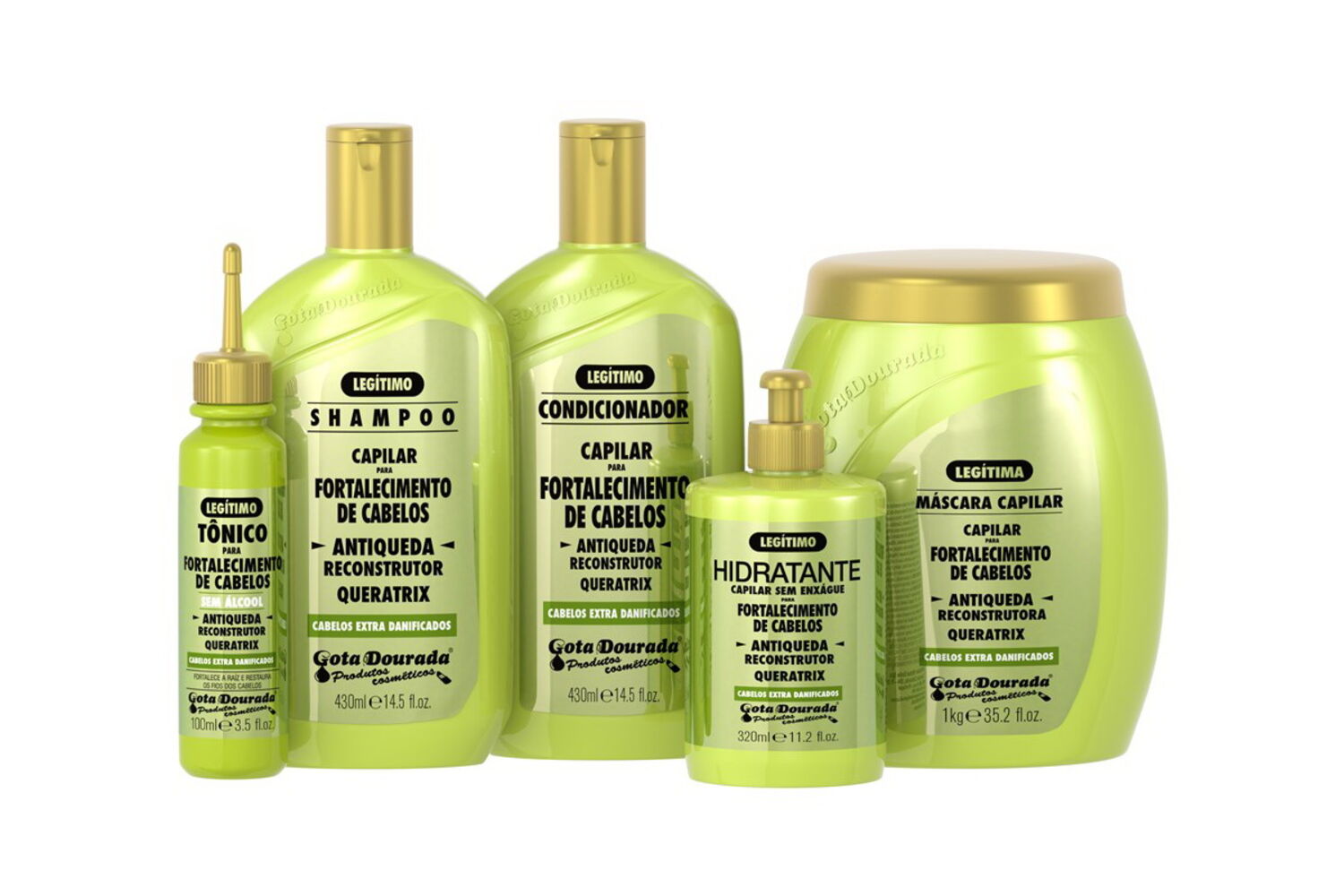 A LINHA DE FORTALECIMENTO ANTIQUEDA QUERATRIX da GOTA DOURADA, elaborada com Queratinae Creatina, age na reconstrução dos fios, promovendo resultados imediatos em cabelos muito danificados. Estes necessitam de um potente ativo reconstrutor, de modo a impedir a queda causada pela quebra dos fios.