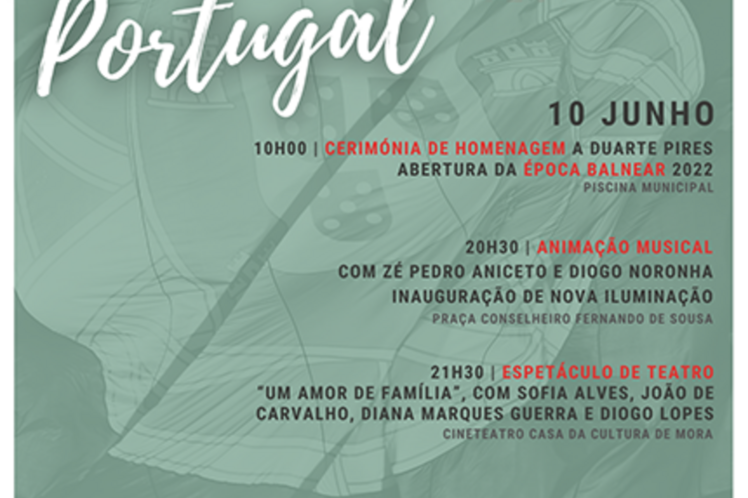 O Município de Mora comemora pela primeira vez o Dia de Portugal, de Camões e das comunidades portuguesas, feriado nacional de 10 de junho.