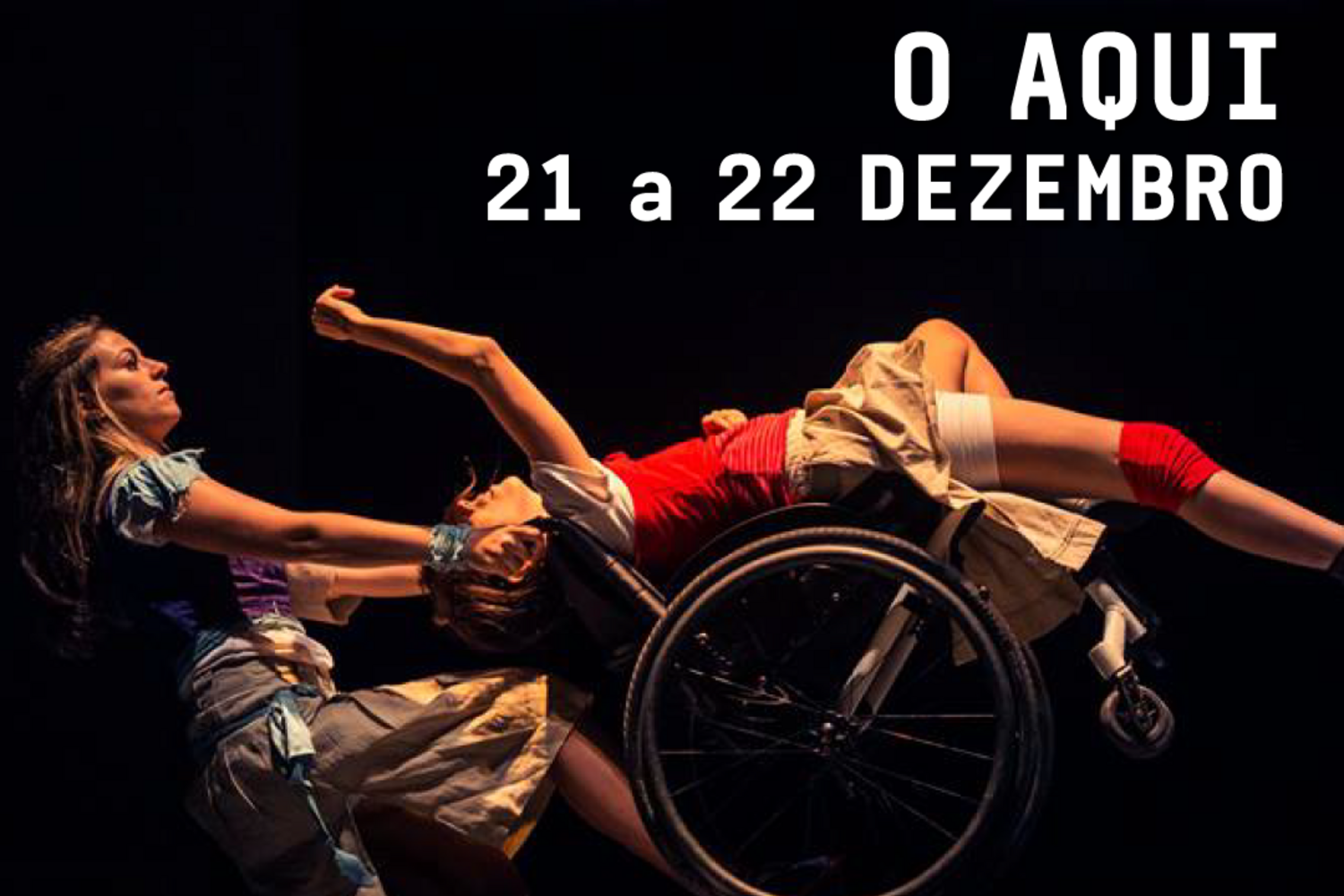 O AQUI é um espetáculo de dança com uma narrativa por vezes fluida, por vezes fragmentada, onde se encontram mundos com diferentes circunstâncias de ser e de estar, onde confluem o risco e o afeto, o arrojo e a generosidade e se conquista um espaço de igualdade.