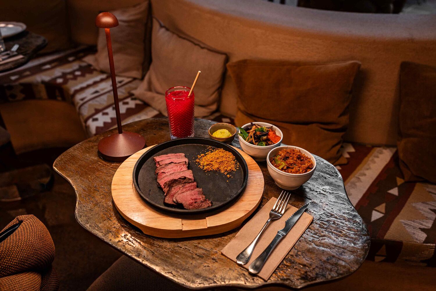 Inspirado na tradição sul-africana, o BRAAI - mais do que apenas um churrasco, é um ritual social, uma celebração entre amigos e família, onde a comida é preparada lentamente na brasa enquanto todos convivem ao redor do fogo - é 100% de proteína animal, conhecido pelos sabores intensos e onde a grelha é a protagonista. O menu oferece uma seleção irresistível de carnes e mariscos grelhados como picanha uruguaia (19,50€), tira de aba argentina (17,25€), rosbife (16,50), coxa de frango sem osso (15€) e o exótico camarão tigre (20€). Cada prato inclui 2 acompanhamentos e 1 molho à escolha, destacando-se opções como batata-doce, nasi goreng de vegetais, feijão preto com bacon e molhos como creme de abacate ou kimchi.