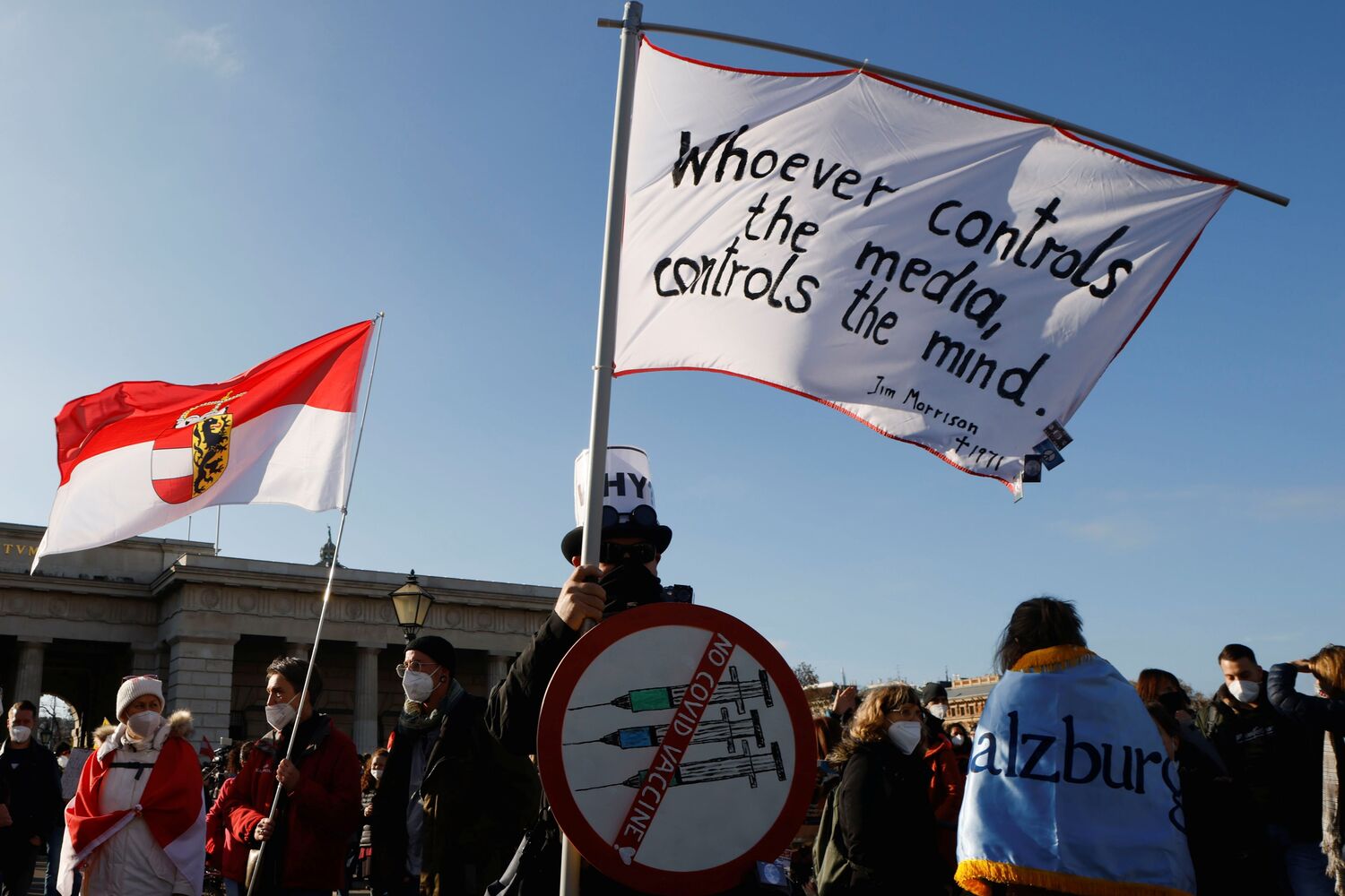 Entre os manifestantes houve quem tivesse feito uma viagem de seis horas para contestar as medidas mais recentes do executivo, como Katarina Gierscher, que, em declarações à AFP, revelou ter vindo desde a província do Tirol para apelar à resistência dos cidadãos e protestar contra medidas que dividem a sociedade.