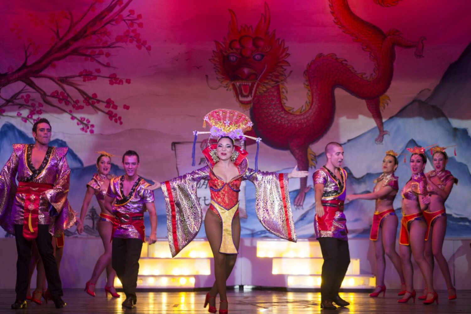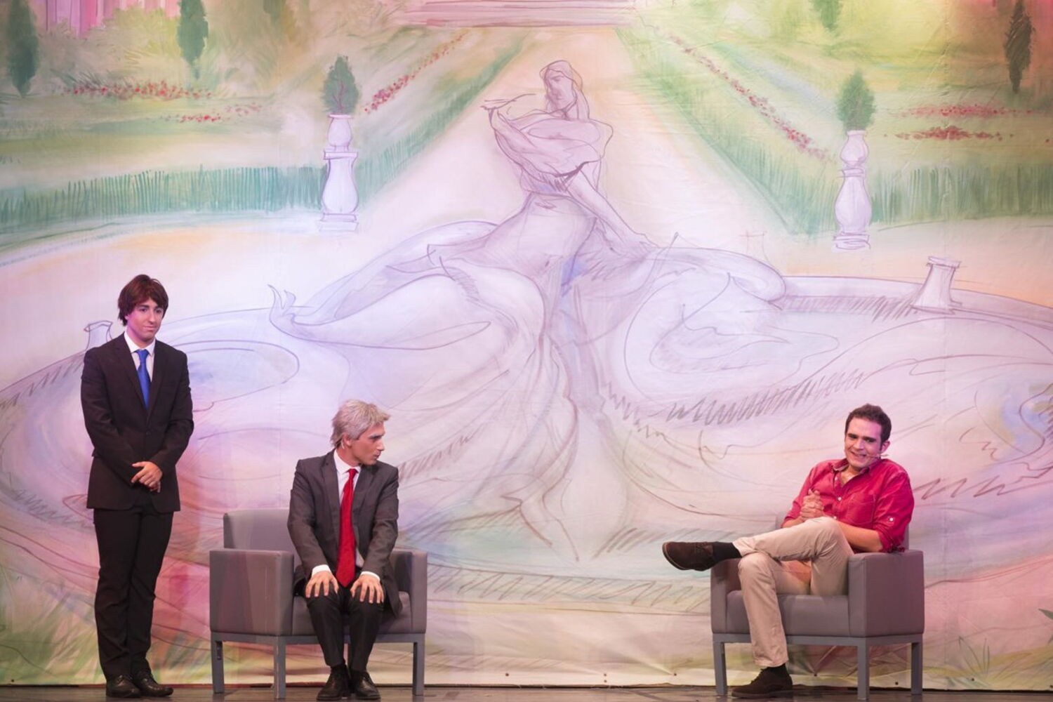 O pano abre, a música arranca e o público aplaude. Flávio Gil – autor, encenador e ator do espetáculo – faz um número de mímica e logo a seguir vem a abertura clássica da Revista à Portuguesa, com a apresentação do elenco e o desfile do corpo de baile.