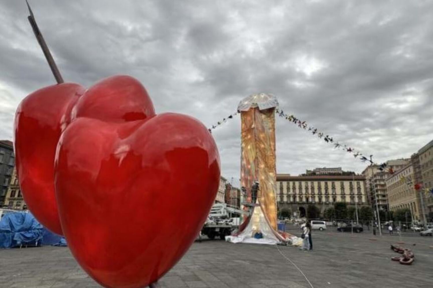 Já o autarca de Nápoles Gaetano Manfredi considerou que "a arte contemporânea deve estimular o debate", pelo que "o facto de a instalação estar a ser discutida significa que atingiu o objetivo". A obra deverá permanecer na Praça do Município até 20 de dezembro.