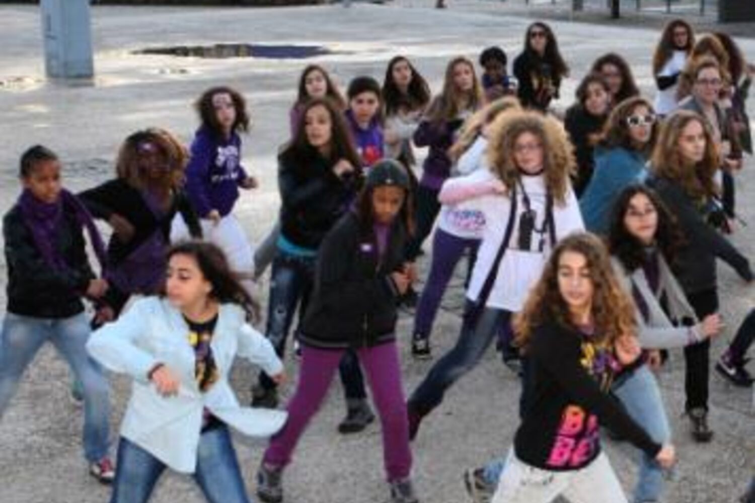 Nem a ameaça de chuva os deteve na segunda ‘flashmob' (fenómeno recente de concentração num local público). Ao som de ‘Somebody to Love', dançaram uma coreografia feita em dois dias, por Inês Ramos, para persuadir Bieber.
