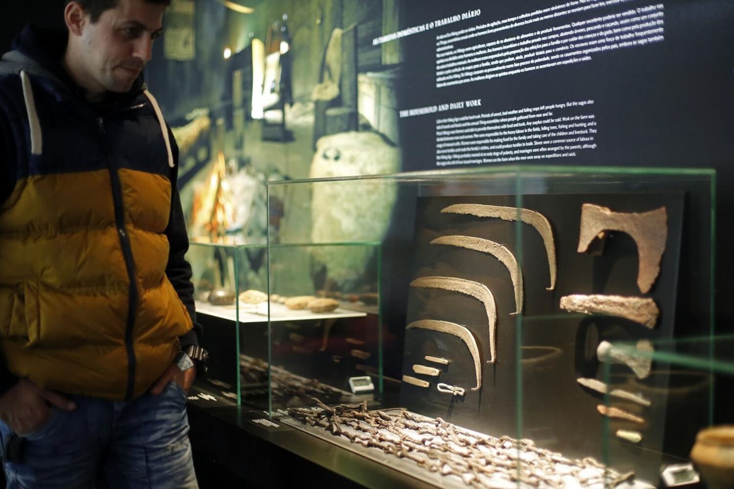 Desde as famosas embarcações até às armas usadas nas batalhas, dos adornos pessoais aos instrumentos de trabalho no campo e na tecelagem, a exposição é abrangente e nem sequer lá falta uma réplica da famosa pedra de Jelling, datada do século X, e que, entre outras inscrições, dá conta da conversão dos dinamarqueses ao cristianismo.