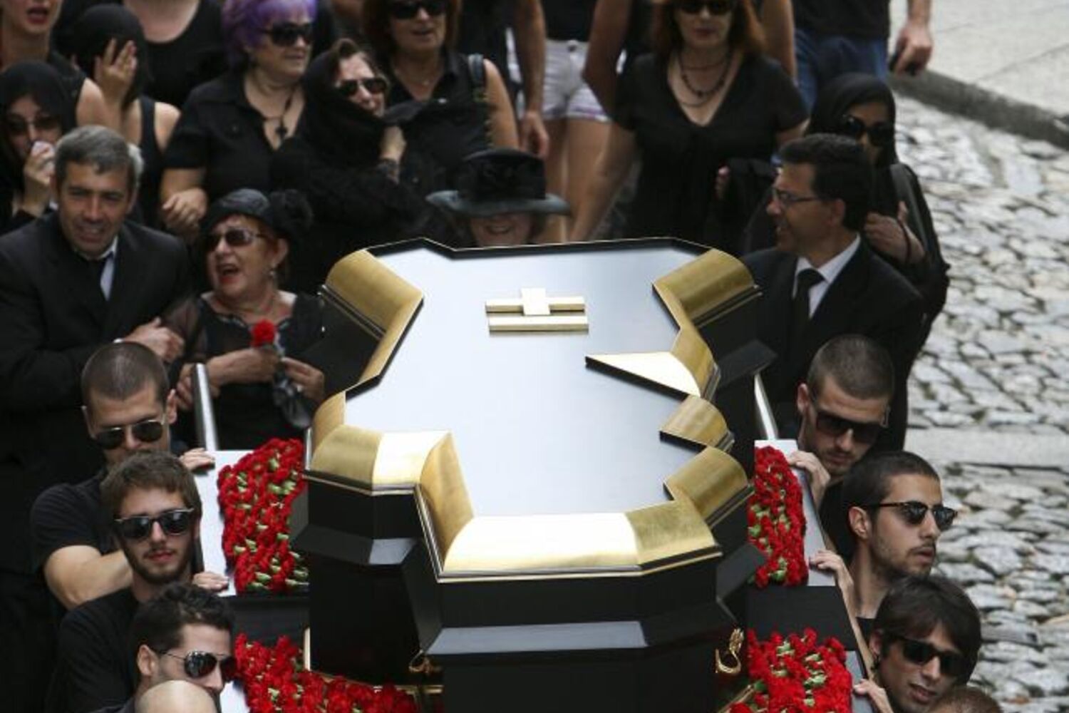 O funeral de Portugal, realizado esta quinta-feira em Guimarães, cidade onde nasceu, reuniu viúvas chorosas e mais de 100 pessoas que, em cortejo lúgubre pelas ruas da cidade, chamaram a atenção para aqueles que ainda não sabiam da morte do país.
