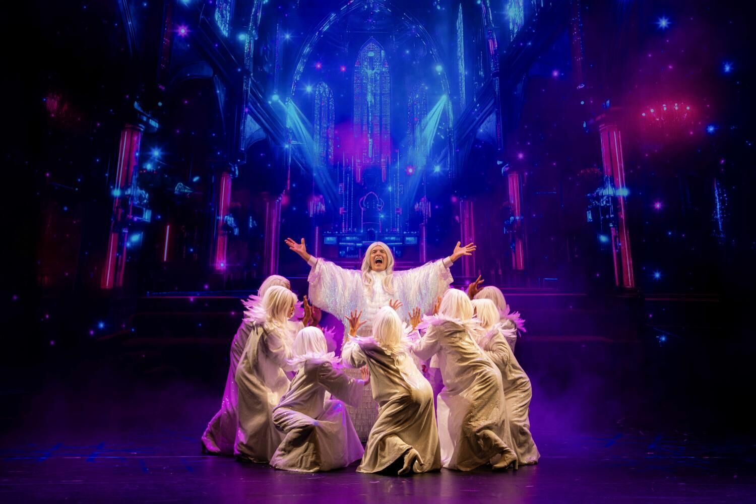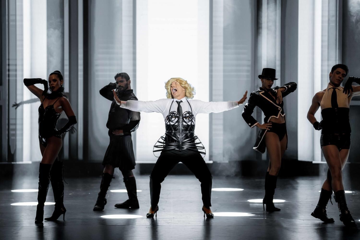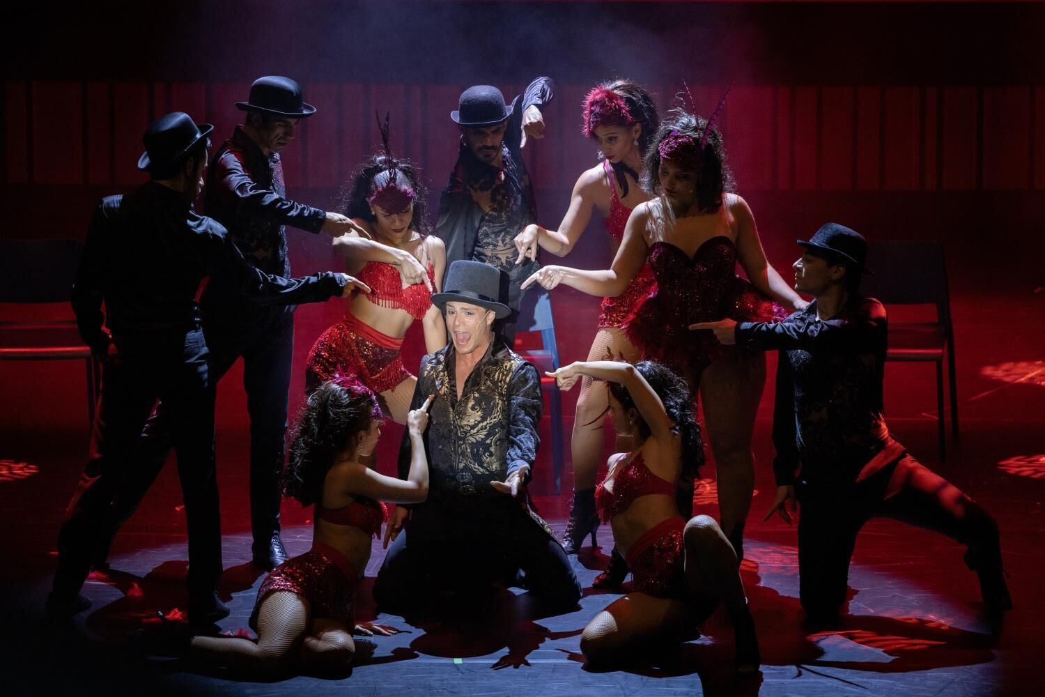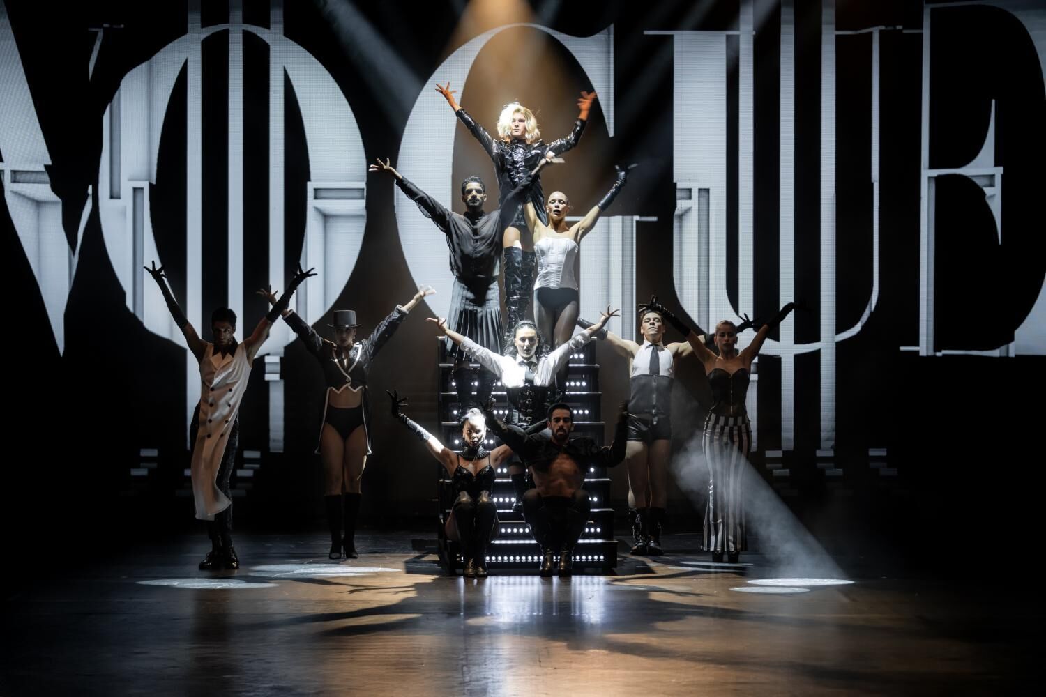 A Revista à Portuguesa e o musical americano (como ‘Chorus Line’) passam pelo palco, mas também figuras nacionais (uma hilariante luta de palavras entre Rosinha e Quim Barreiros, por exemplo), mas ainda uma homenagem a Madonna e um surpreendente número com “Deus” são alguns dos momentos mais marcantes de um espetáculo que se oferece como um regalo para os olhos e os ouvidos. Numa terra perto de si.