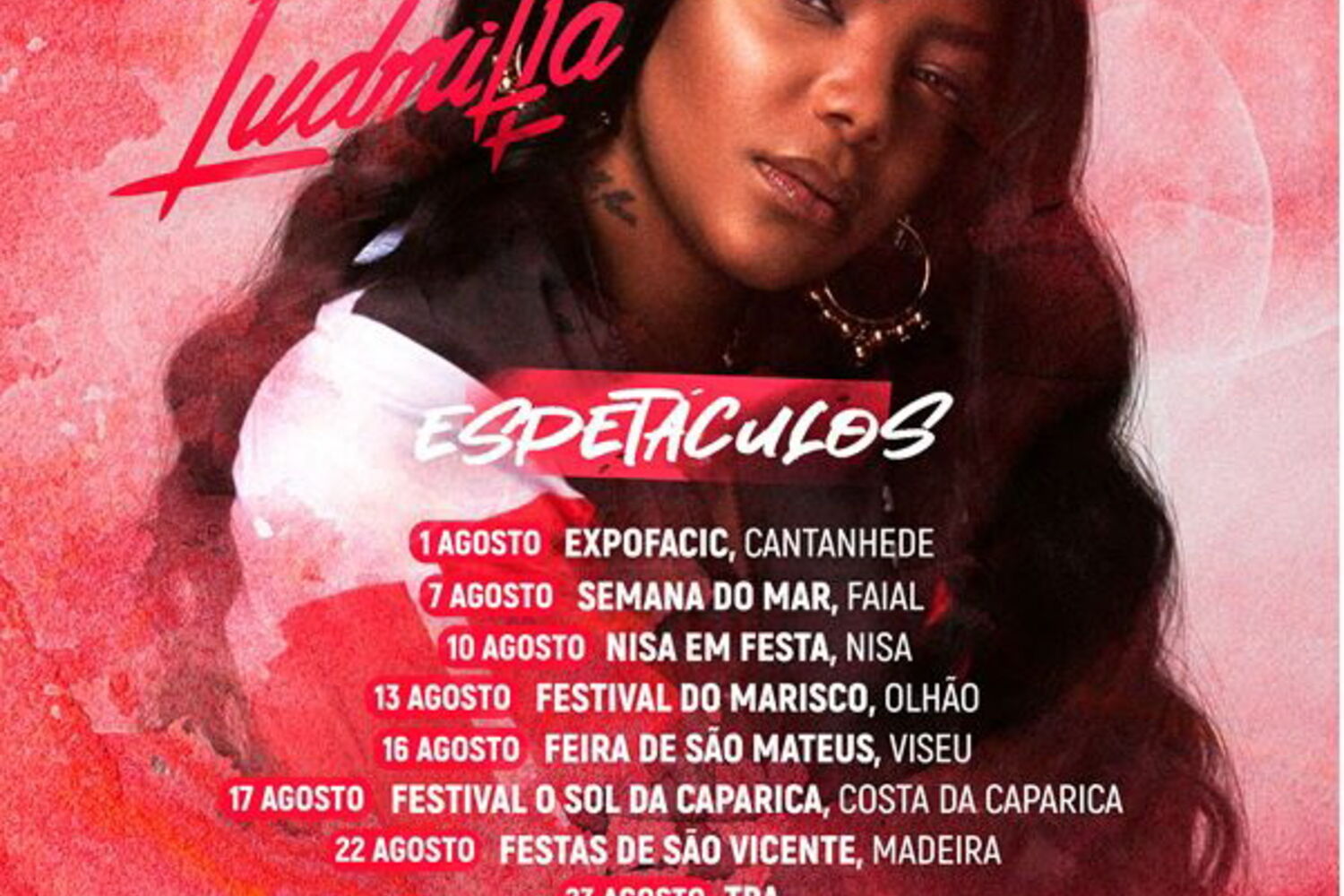 Ludmilla estreia-se a 01 de agosto na 'Expofacic', em Cantanhede. Segue-se a atuação a 07 de agosto na 'Semana do Mar', no Faial; 10 de agosto em 'Nisa em Festa', em Nisa; 13 de agosto no 'Festival do Marisco', em Olhão; 16 de agosto na 'Feira de São Mateus', em Viseu; a 17 de agosto no festival 'O Sol da Caparica', na Costa da Caparica e a 22 de agosto nas 'Festas de São Vicente', na Madeira.