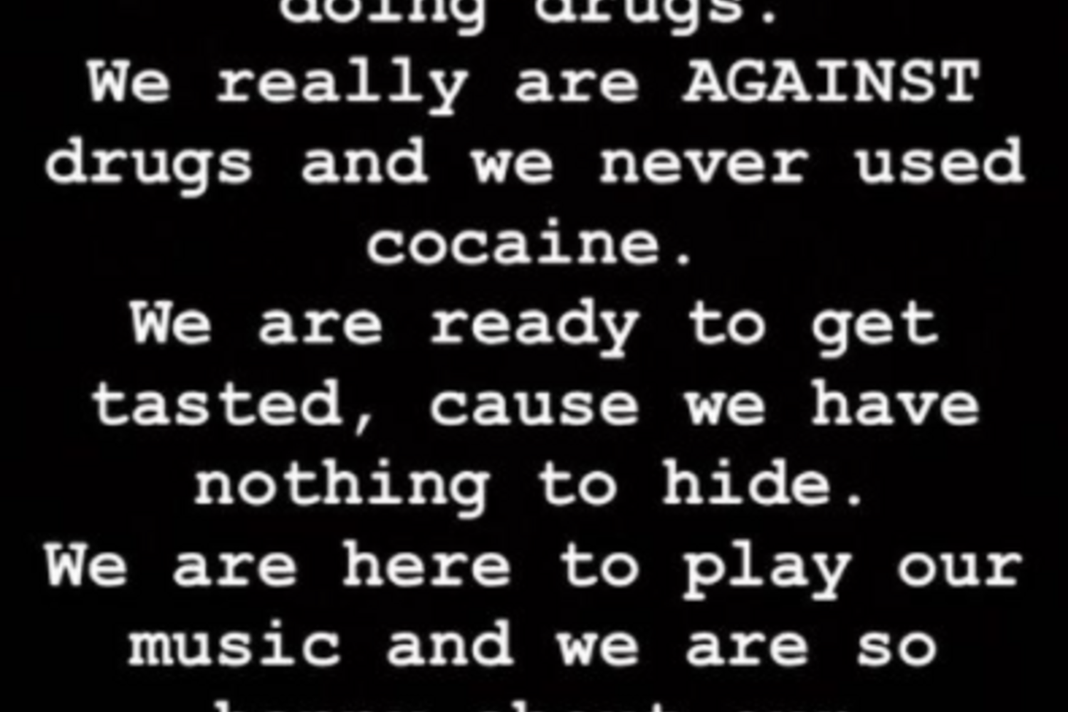 Banda desmentiu, ainda durante a noite, através das redes sociais, que o vocalista Damiano David tenha consumido cocaína.