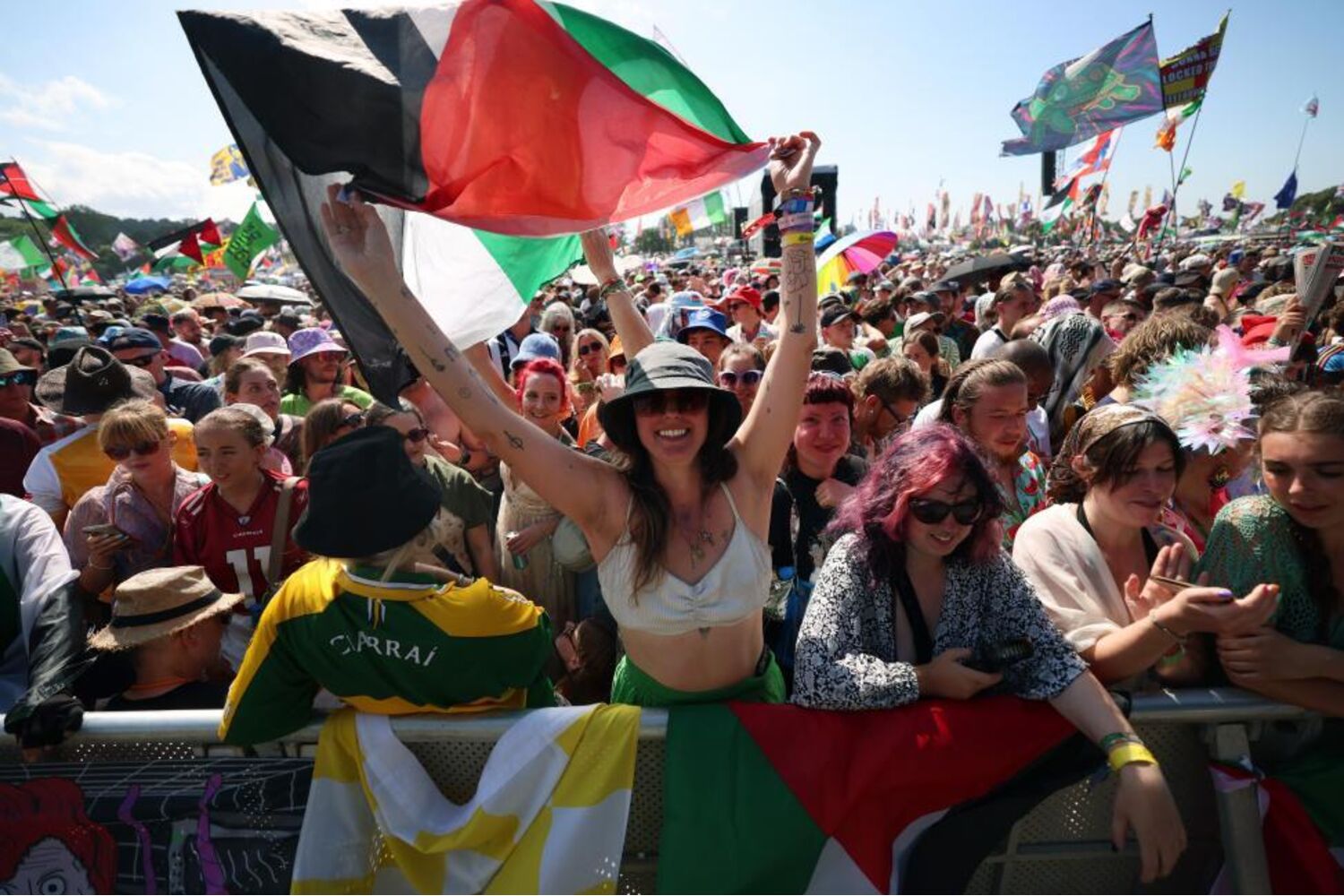 Os Kneecap, um grupo proveniente da Irlanda do Norte cuja presença no festival esteve desde sempre envolta em polémica, entoaram cânticos contra o atual primeiro-ministro britânico, Keir Starmer, pedindo também aos fãs para que organizassem motins à porta dos tribunais onde decorre um processo contra o vocalista Mo Chara por “incitamento ao terrorismo”.