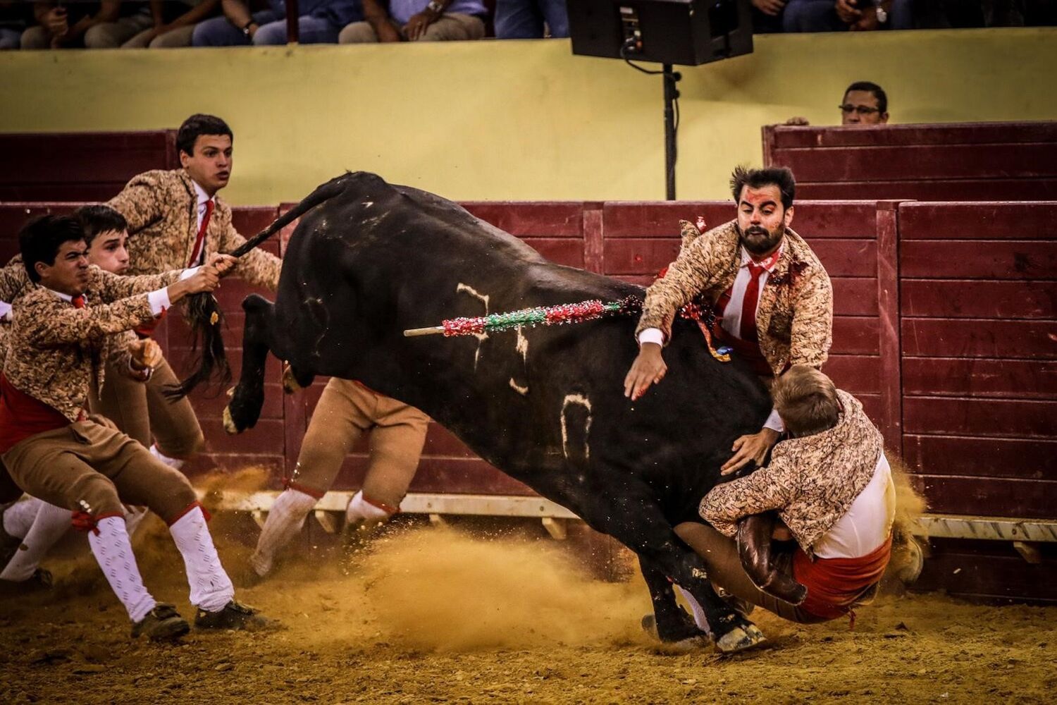 Dos cavaleiros, João Moura Júnior não esteve bem no primeiro touro, mas as duas mourinhas aplicadas ao segundo foram outro momento alto da noite. Marcos Bastinhas esteve em bom nível e António Telles Filho mostrou que tem margem de evolução para honrar os pergaminhos de família.