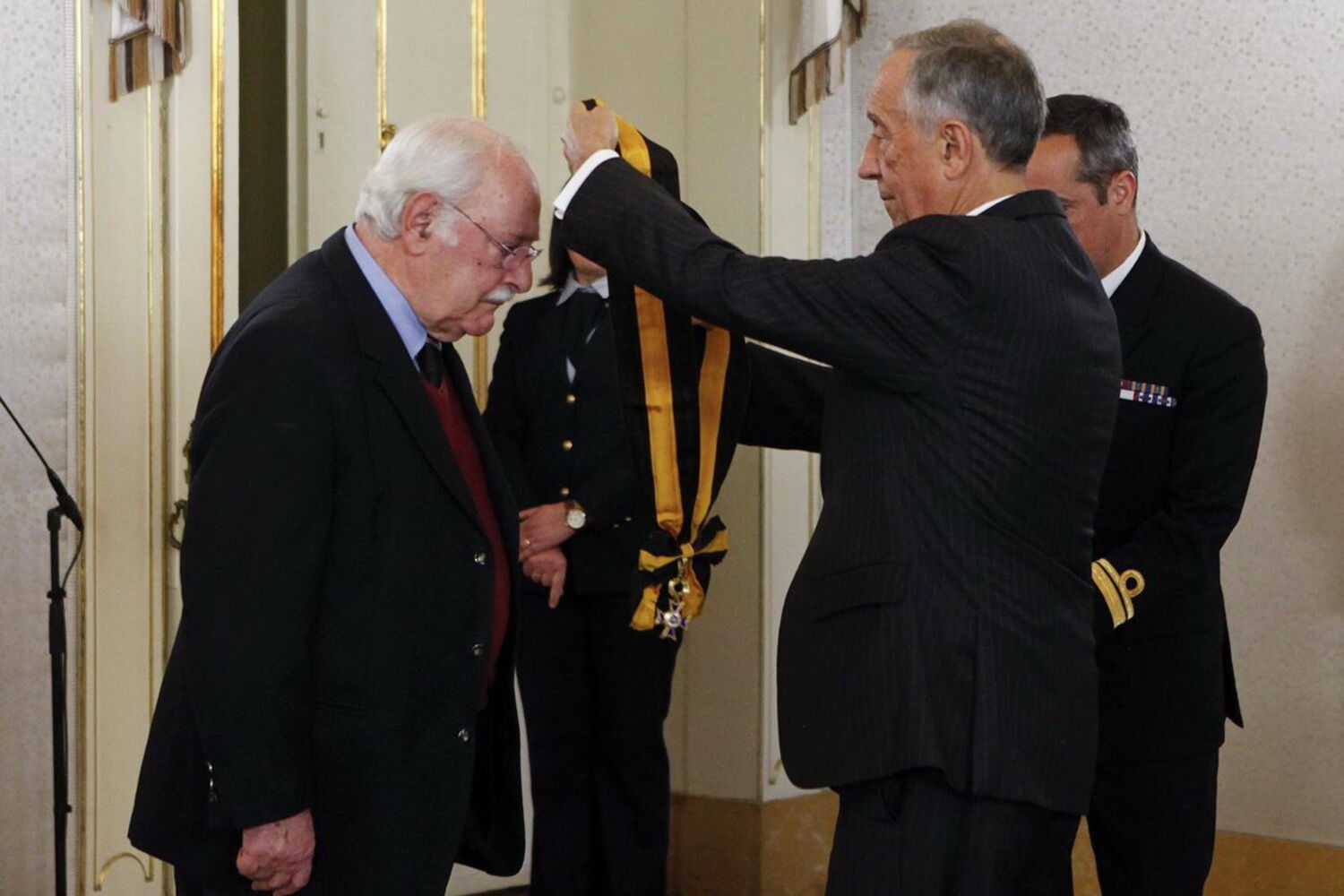 No dia em que comemora 90 anos, o ator Ruy de Carvalho foi recebido por Marcelo Rebelo de Sousa na Sala dos Embaixadores, no Palácio de Belém, onde foi condecorado com a Grã-Cruz da Ordem de Mérito.