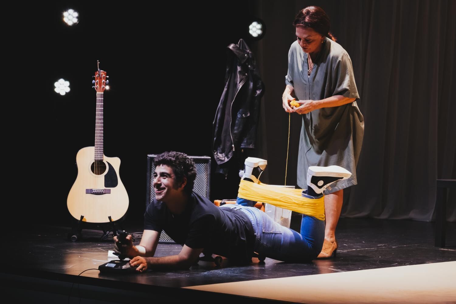 “Quando saímos da reunião ficou muito claro para nós que a peça ia ser sobre pessoas com dificuldades de locomoção e concentrei-me em escrever um texto em que o protagonista não fosse nem uma vítima nem um herói glorificado”, explica o autor. Oelenco integraria, por razões óbvias, Ricardo Carriço, mas também dois atores com quem Tiago Torres da Silva costuma trabalhar com regularidade: Rita Ribeiro e Baltasar Marçal. A atriz é a mãe. Os atores são uma e a mesma personagem: Rodrigo, antes e depois do acidente que o(s) deixa numa cadeira de rodas.