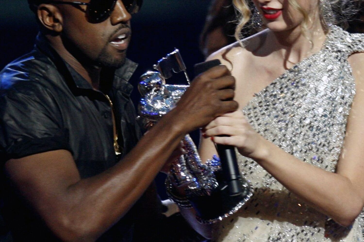 Quando a jovem agradecia a distinção, West irrompeu pelo palco, tirou-lhe o microfone das mãos e disparou: 'Taylor, estou muito feliz por ti, mas a Beyoncé tem um dos melhores vídeos de todos os tempos.' E saiu de cena para espanto de todos.