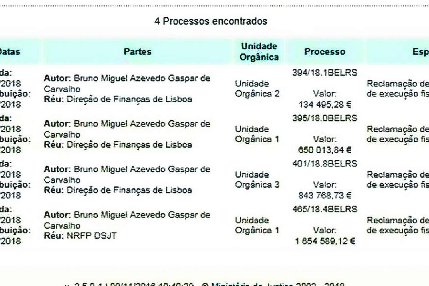 Todas as ações deram entrada no Tribunal Tributário de Lisboa, sendo que as três primeiras são colocadas contra a Direção de Finanças de Lisboa e a última (que entrou no passado dia 7) é interposta contra a Direção de Serviços da Justiça Tributária (DSJT), entidade que supervisiona todas as execuções de dívidas fiscais.